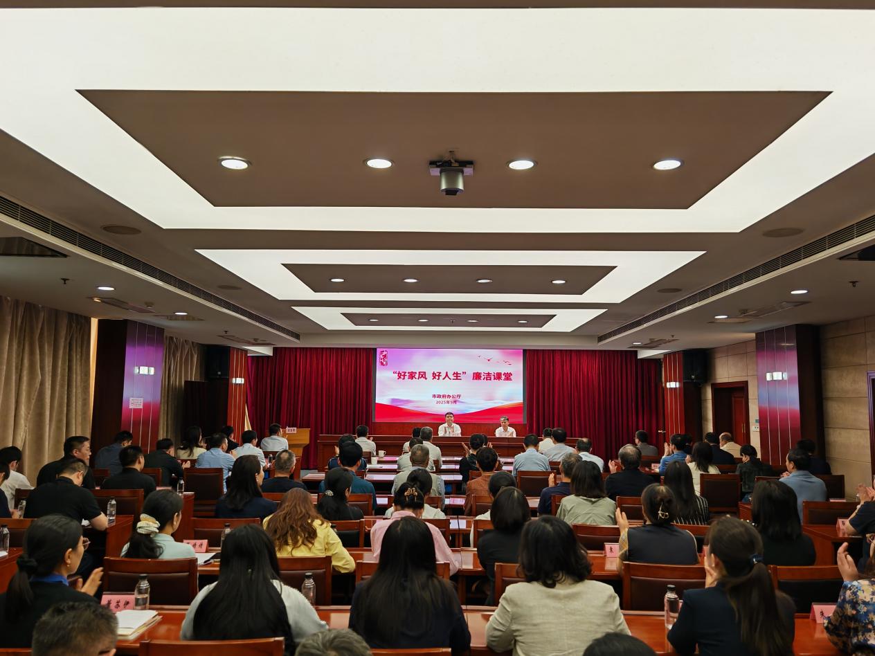 为落实市纪委监委的部署要求,充分发挥家庭在党风廉政建设中的特殊作用,9月20日,市政府办公厅开展“好人生 好家风”廉洁课堂活动。办公厅领导班子成员,各处室主要负责同志、新提拔干部和关键岗位干部代表及其家属参加活动。活动由市政府副秘书长、办公厅机关党委书记刘军主持,市政府秘书长、办公厅党组书记、主任洪礼来作总结讲话。