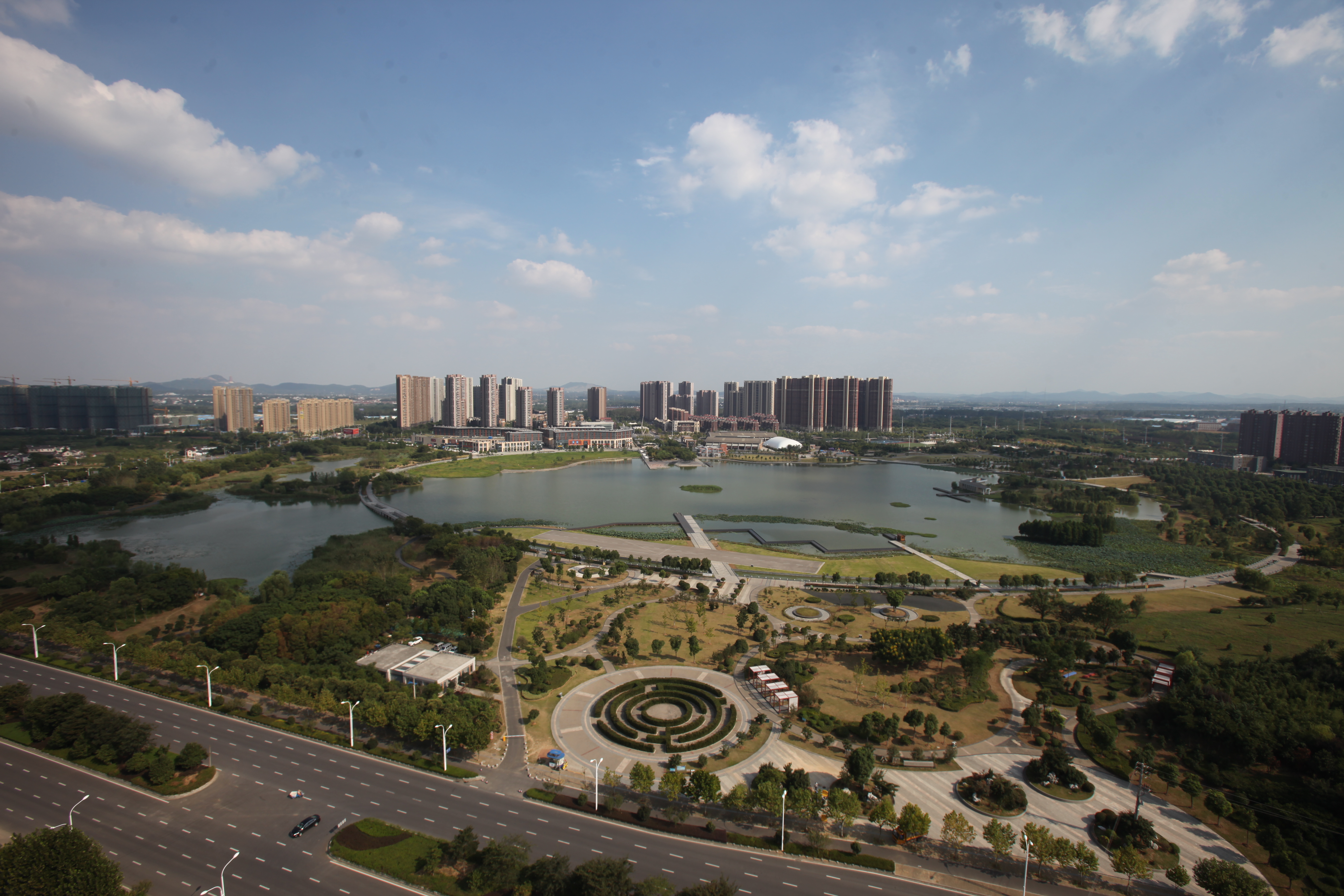 板桥片区开发于2005年6月启动,经过近二十年建设,莲花湖周边4平方公里核心区基本建成,成功引进金地集团、花样年、朗诗集团、新城控股集团(吾悦广场)等全国知名地产运营商进驻新城,现代人居迅速崛起。莲花湖公园占地面积1300亩,其中水面420亩,是镶嵌在板桥片区中心的一颗明珠。刘小楚摄