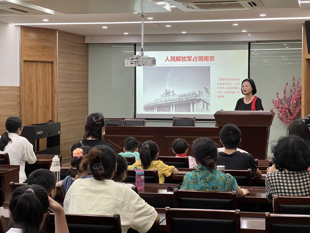 江宁织造博物馆常务副馆长黄晨(曾任渡江胜利纪念馆副馆长)以《伟大的时刻 人民的胜利》为题,娓娓讲述“人民解放军占领南京”“百万雄师过大江”“先锋连”等老照片背后的故事,深情阐释渡江战役的胜利是人民的胜利。现场家长和孩子们深受鼓舞,对黄馆长的讲授表示了一致好评。