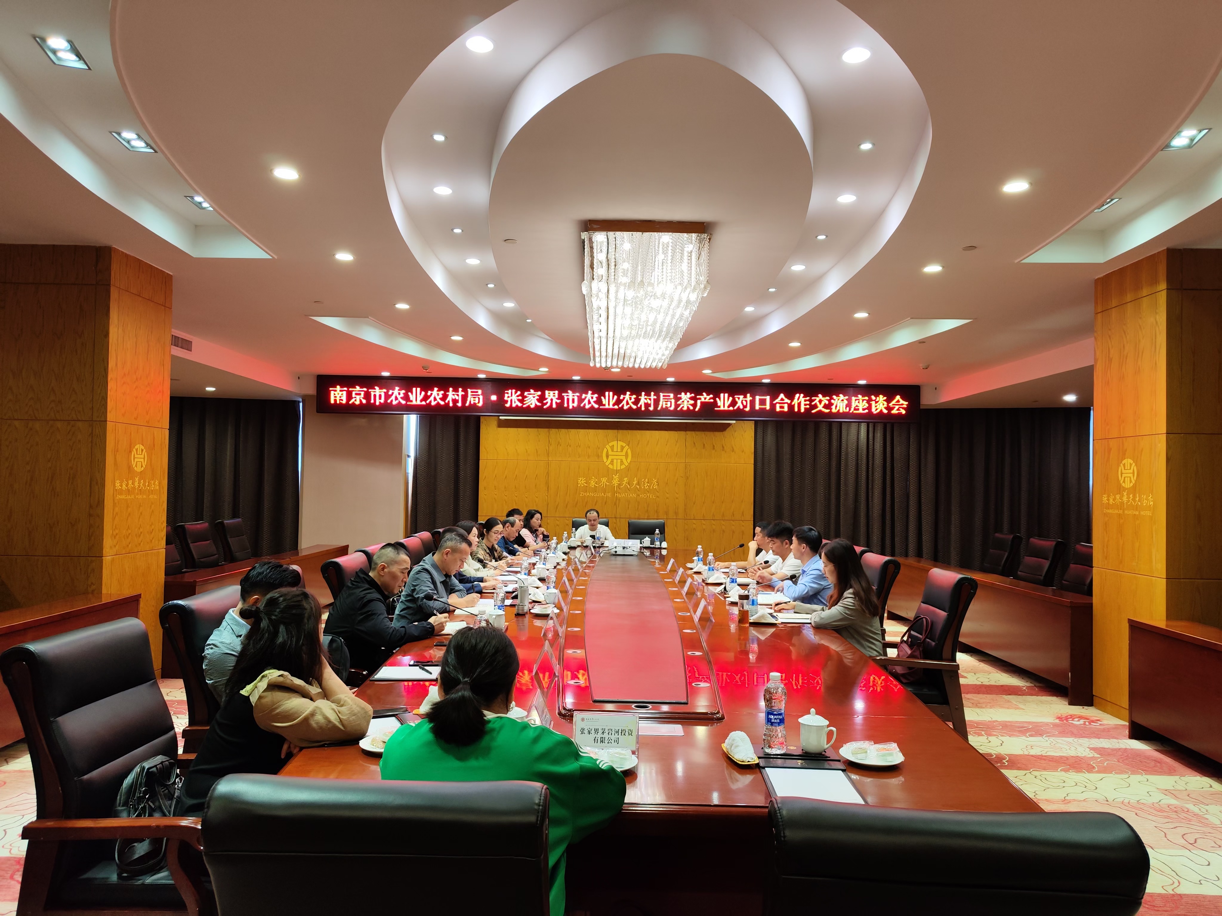 送科技、传技能、输理念、拓市场,产业专家服务团牢记责任使命,跑基地、进厂企、做调研,为对口合作破难题、谋实招。18日上午,张家界市农业农村局组织全市莓茶、白茶产业相关政府部门、业务主管机构、行业协会、重点茶企代表等,与专家服务团济济一堂,召开“南京市农业农村局﹒张家界市农业农村局茶产业对口合作交流座谈会”。座谈会上,服务团各位专家与当地与会代表展开了热烈讨论,纷纷就茶园新技术引进与推广、茶叶新市场开拓、茶叶衍生品开发等畅所欲言,梳理了现代茶产业生产经营面临的困境和新科技需求,为张家界茶叶品质提升及产业高质量发展献计献策。