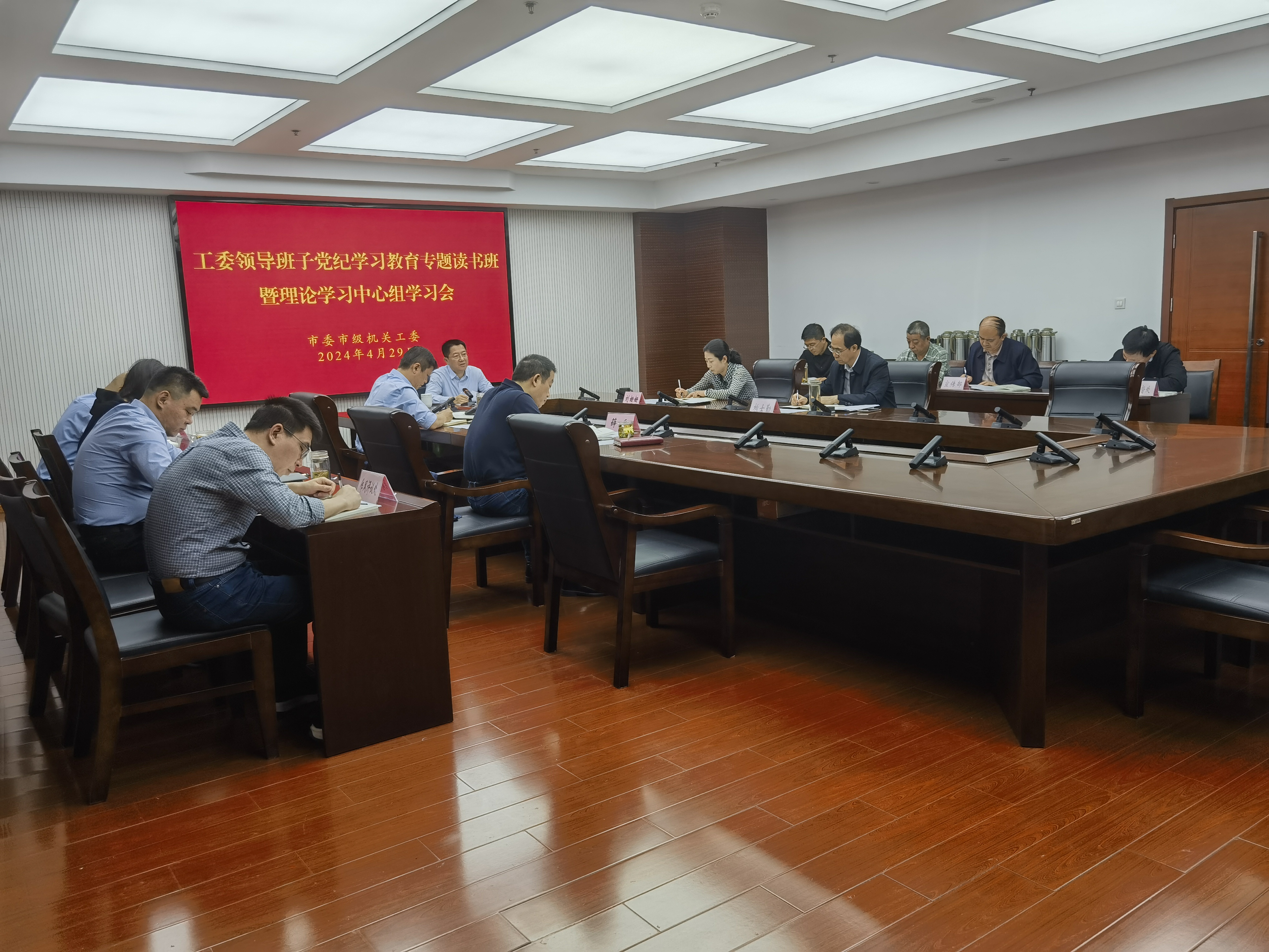 4月29日,市委市级机关工委领导班子举行党纪学习教育专题读书班暨理论学习中心组学习会,深入学习贯彻习近平总书记关于加强党的纪律建设的重要论述,原原本本、逐章逐条学习新修订的《中国共产党纪律处分条例》,进一步增强政治定力、纪律定力、道德定力、抵腐定力。