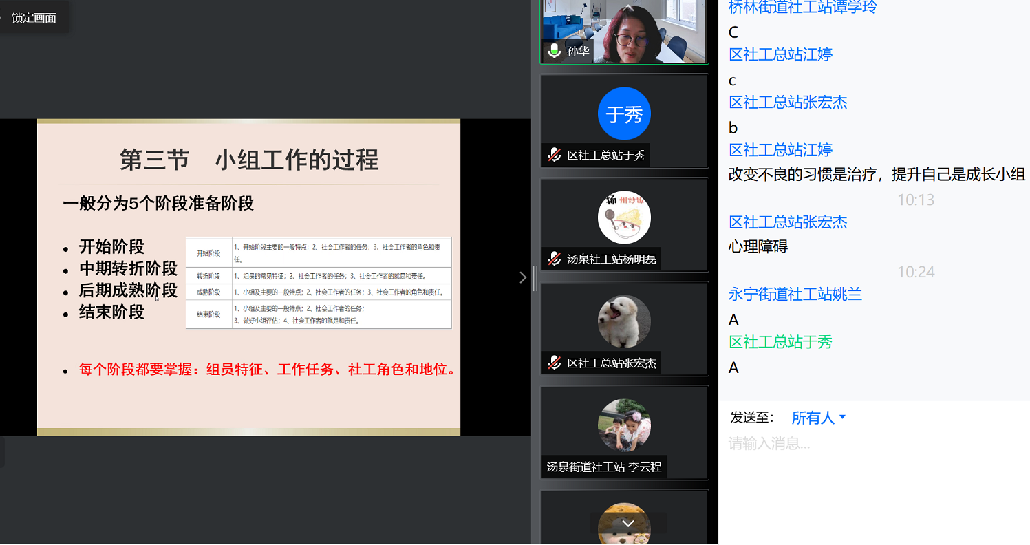 为发挥街道社工站在社区治理和服务居民的平台优势,增强社工站的专业服务能力,进一步提升街道社工站社工的社会化、职业化、专业化水平。浦口区民政局联合浦口区社会工作服务中心面向辖区街道社工站从业成员举办“2022年度浦口区街道社工站建设专题培训”,各街道社工站积极组织社工参加培训,按时参加本次培训的直播课和点播课。
