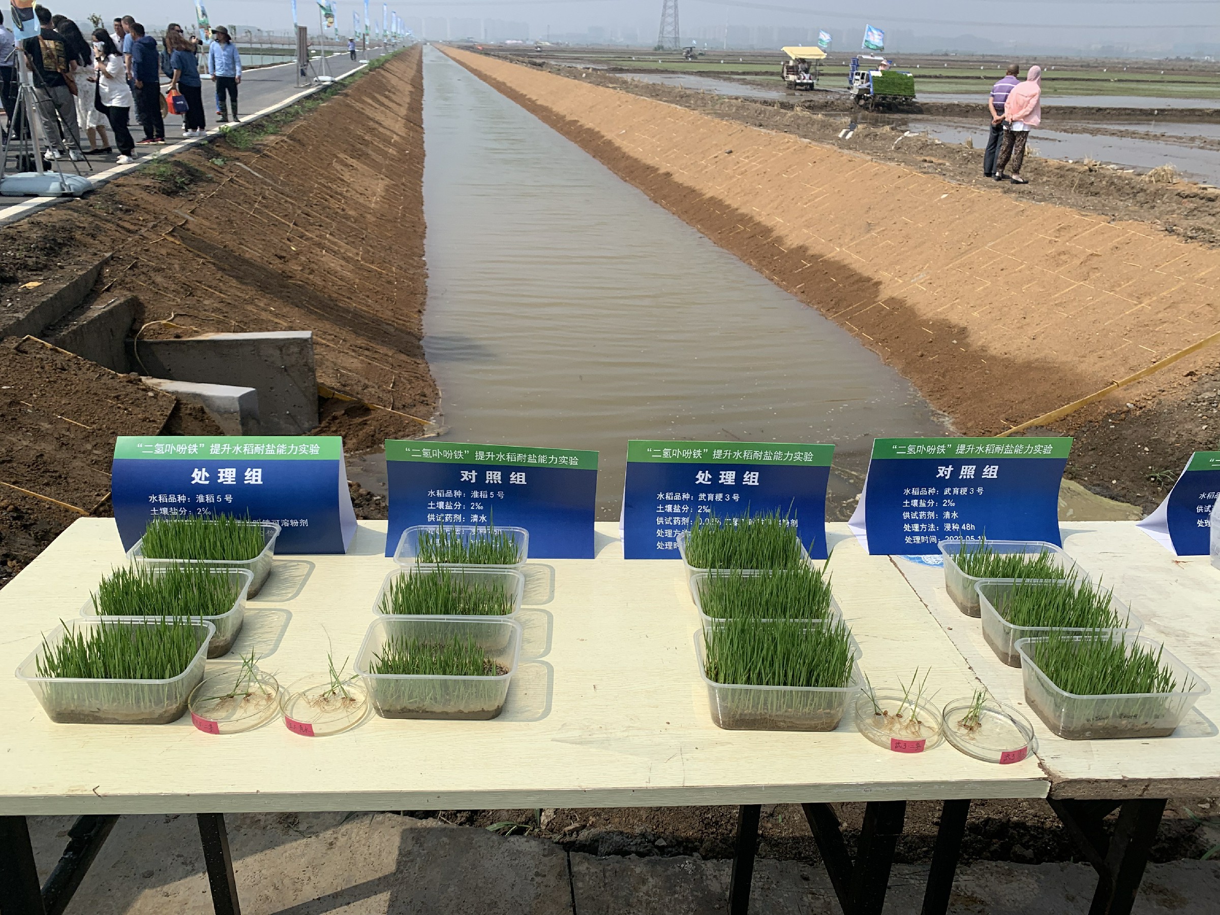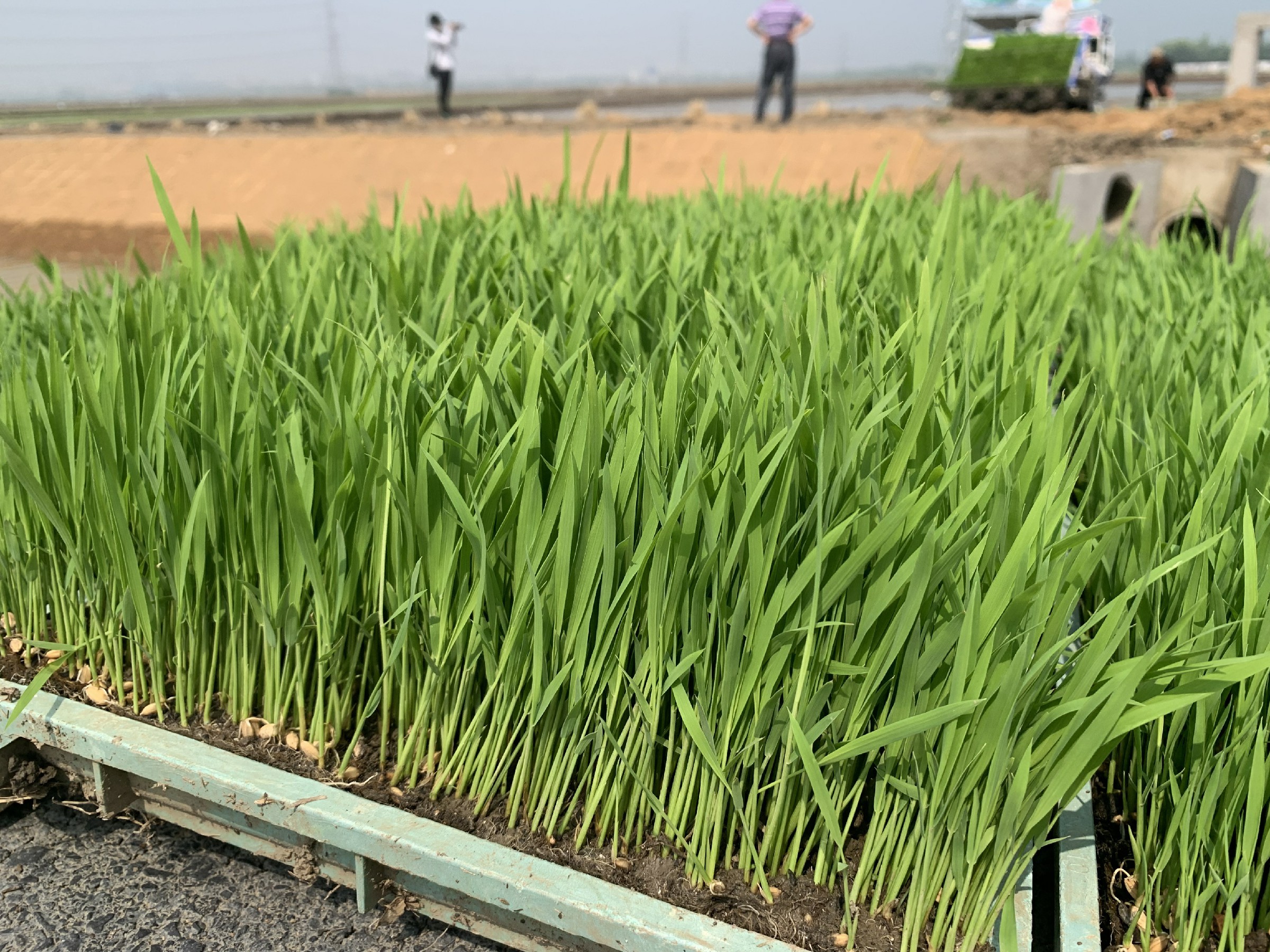 在桥林街道兰花塘种植片区,4000余亩高标准农田,整齐连片,大小沟渠纵横交错。一台台插秧机装载着一盘盘嫩绿色的秧苗在农田里来回穿梭,所过之处,一株株秧苗被整齐地插进水田的泥土中。这些种下去的秧苗区别于普通秧苗,其根系更为粗壮,这些秧苗正是采用了一种水稻种子处理新药剂——“二氢卟吩铁”,这是一种新型植物免疫诱抗剂,给水稻补充“维生素”,增强“免疫力”,为水稻实现高产、优质、高效加上一道“保险”。江苏省农科院植保所副所长、研究员魏利辉介绍:“在浸种期,可以促进根系萌发,根系发达,秧苗就比较壮,移栽的时候比较容易活棵。如果种子发芽率有了保证,那么就可以降低种子使用量,降低成本,此外正常产量可以提升5%-10%,无论是对国家粮食安全,还是当地种植户收益,都体现了高效、节本。”
