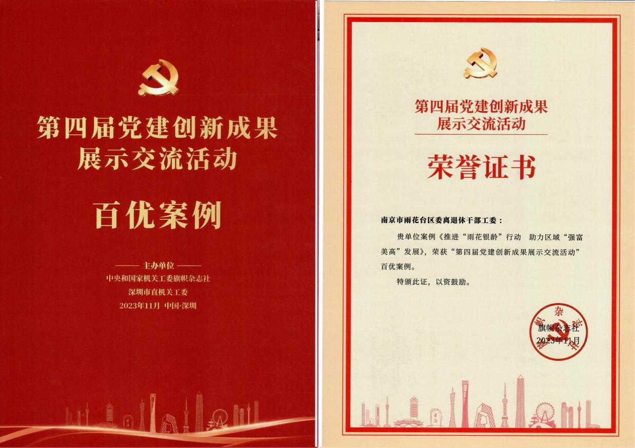 近日,南京市雨花台区《推进“雨花银龄”行动 助力区域“强富美高”发展》党建创新案例被《旗帜》杂志社评为第四届党建创新成果展示交流活动“百优案例”。