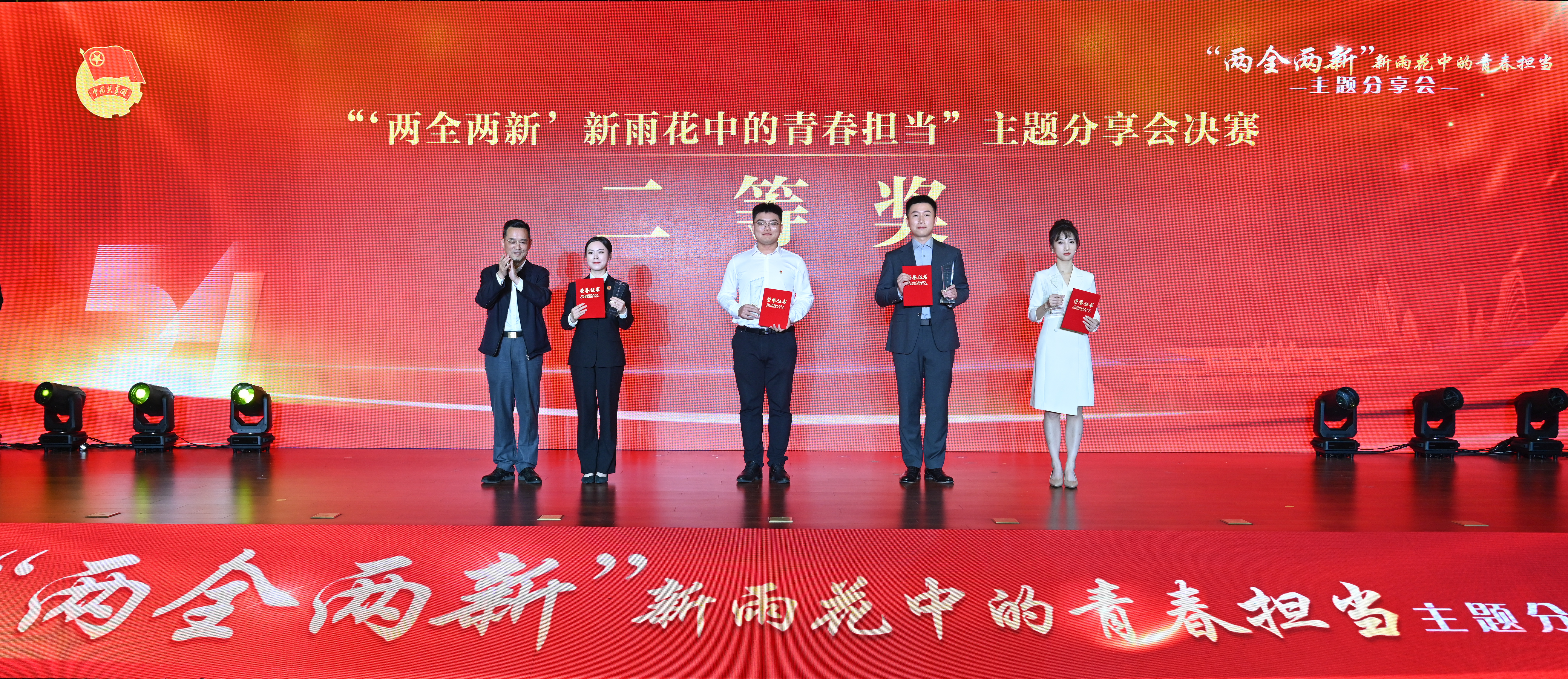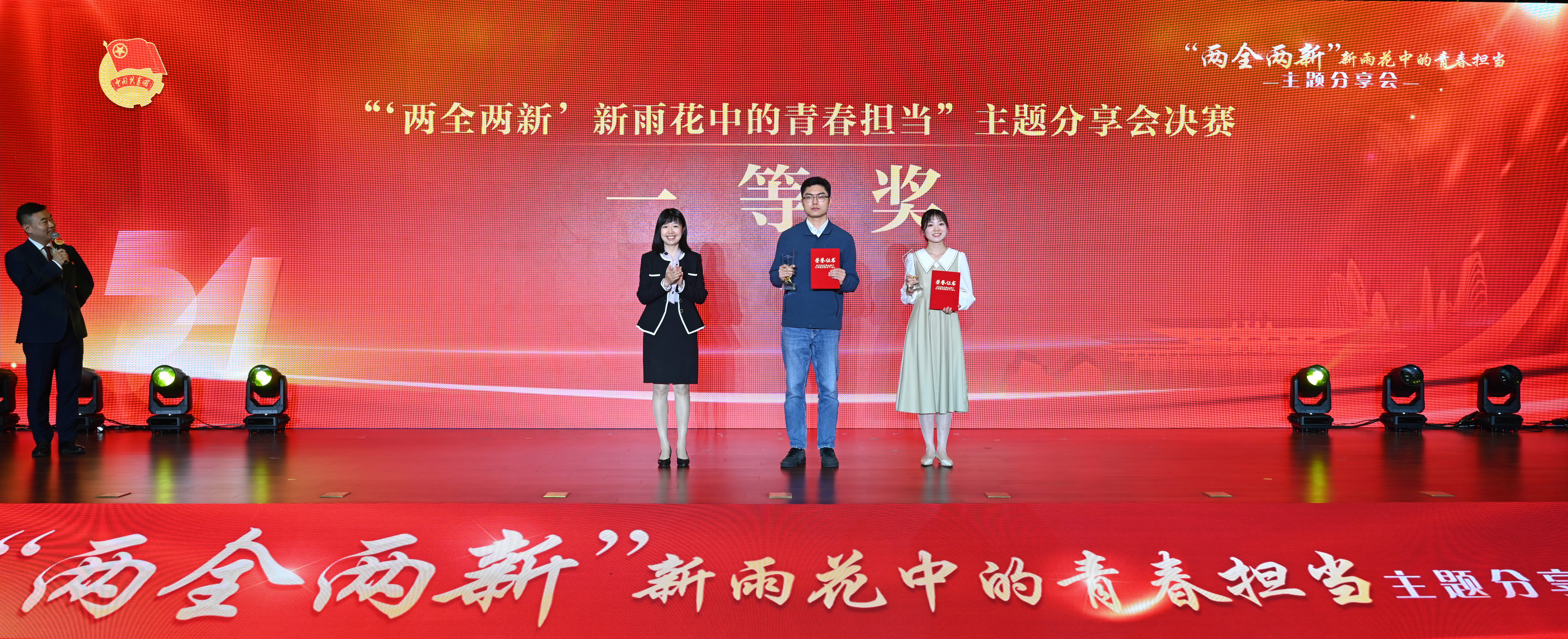 区级机关工委书记张雪梅、团区委书记李进进、南京师范大学新闻与传播学院副院长邹举、国家一级播音员唐莹分别为获得“优秀组织奖”“青春风采奖”“青春创意奖”“青春活力奖”的单位颁奖。