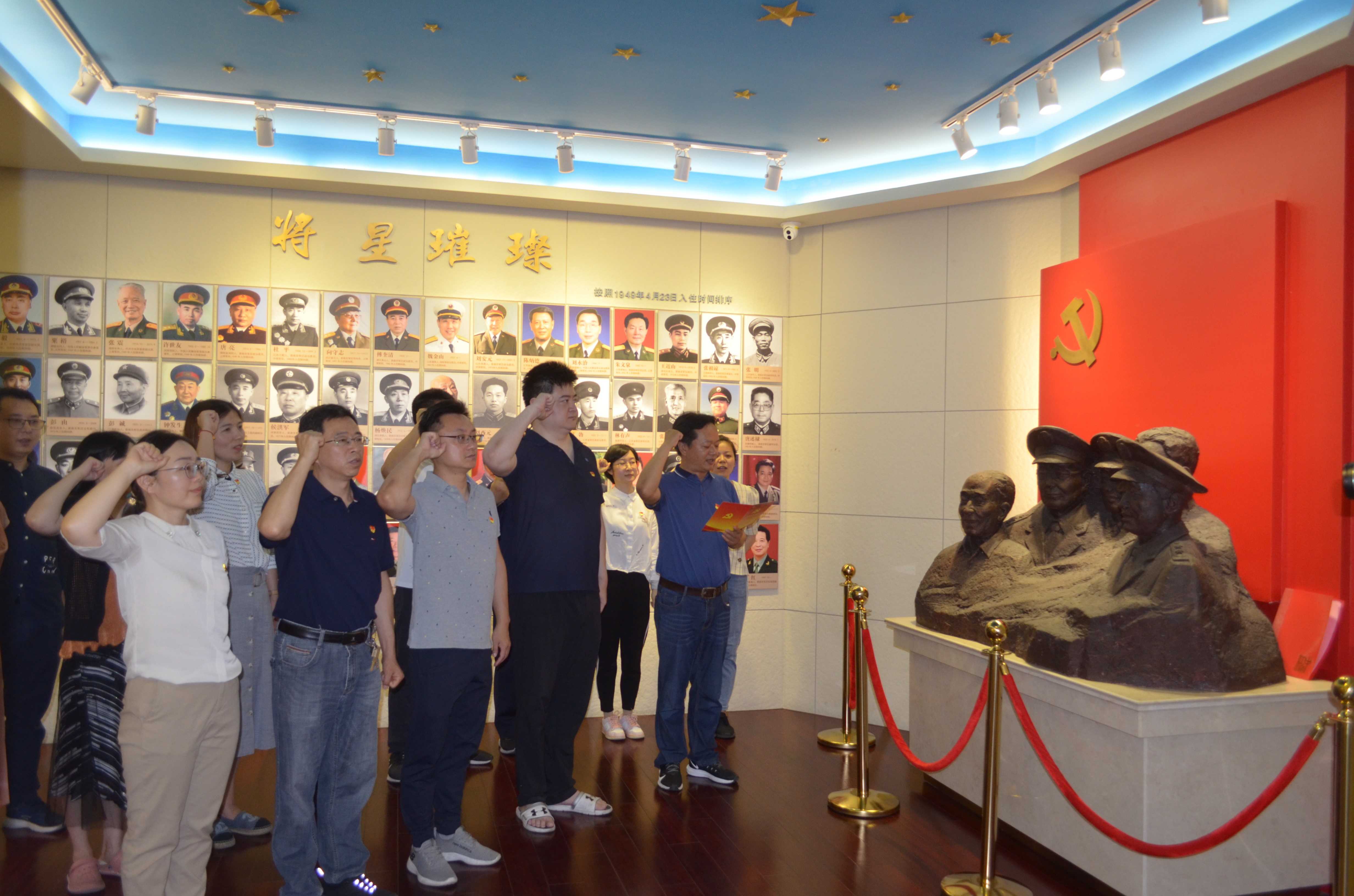本次主题党日活动上,局机关两个支部有5名同志过“政治生日”,支部所有党员同他们一起,在将军群雕前,在革命文化传承及爱国主义教育基地前,面向党旗重温了入党誓词。