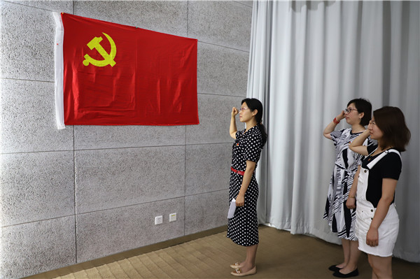 在庄严的党旗下,预备党员在支部书记阙晶晶的带领下进行了入党宣誓,通过宣誓,增强了大家的党性观念。