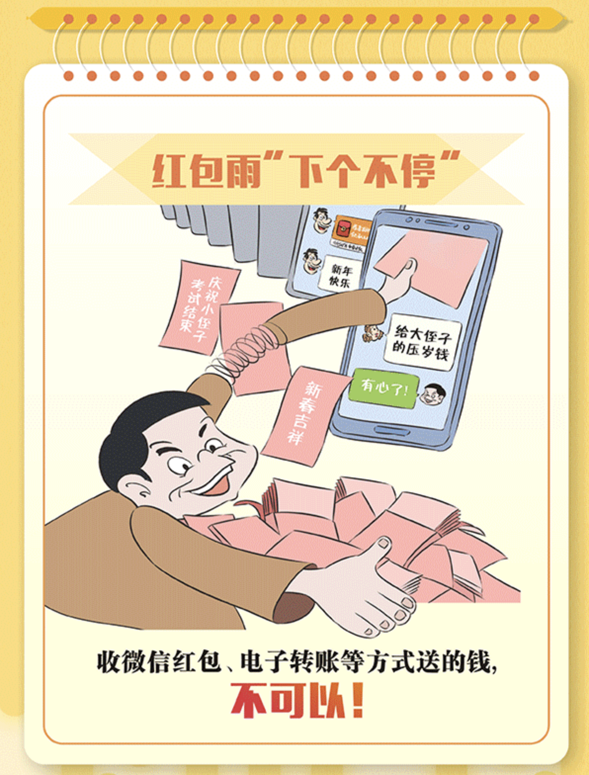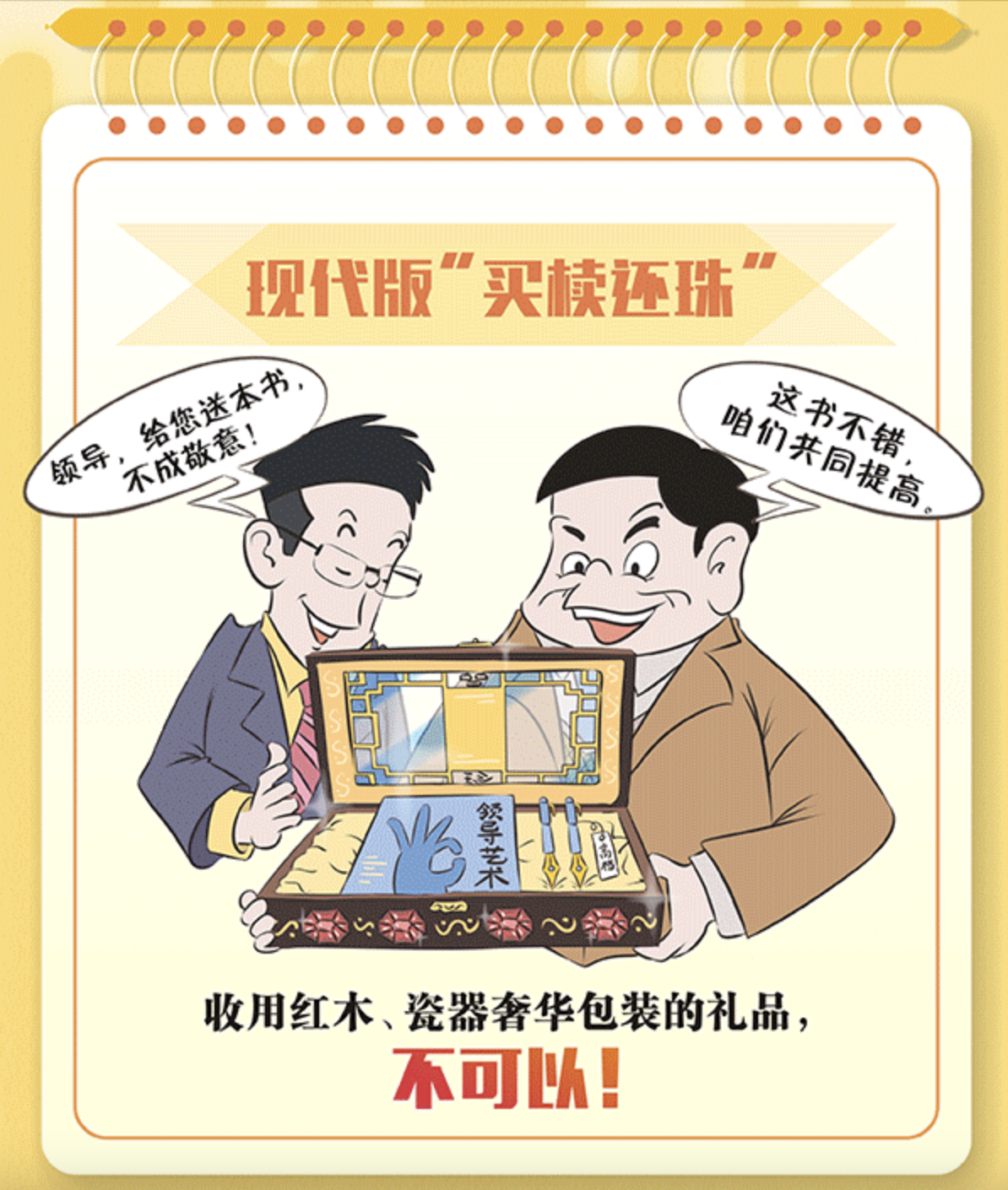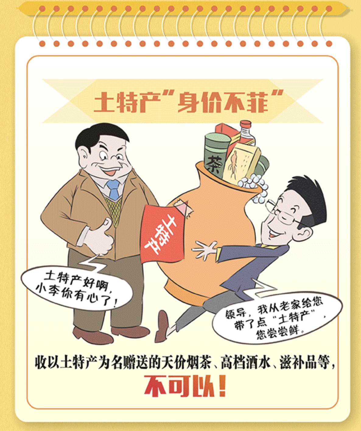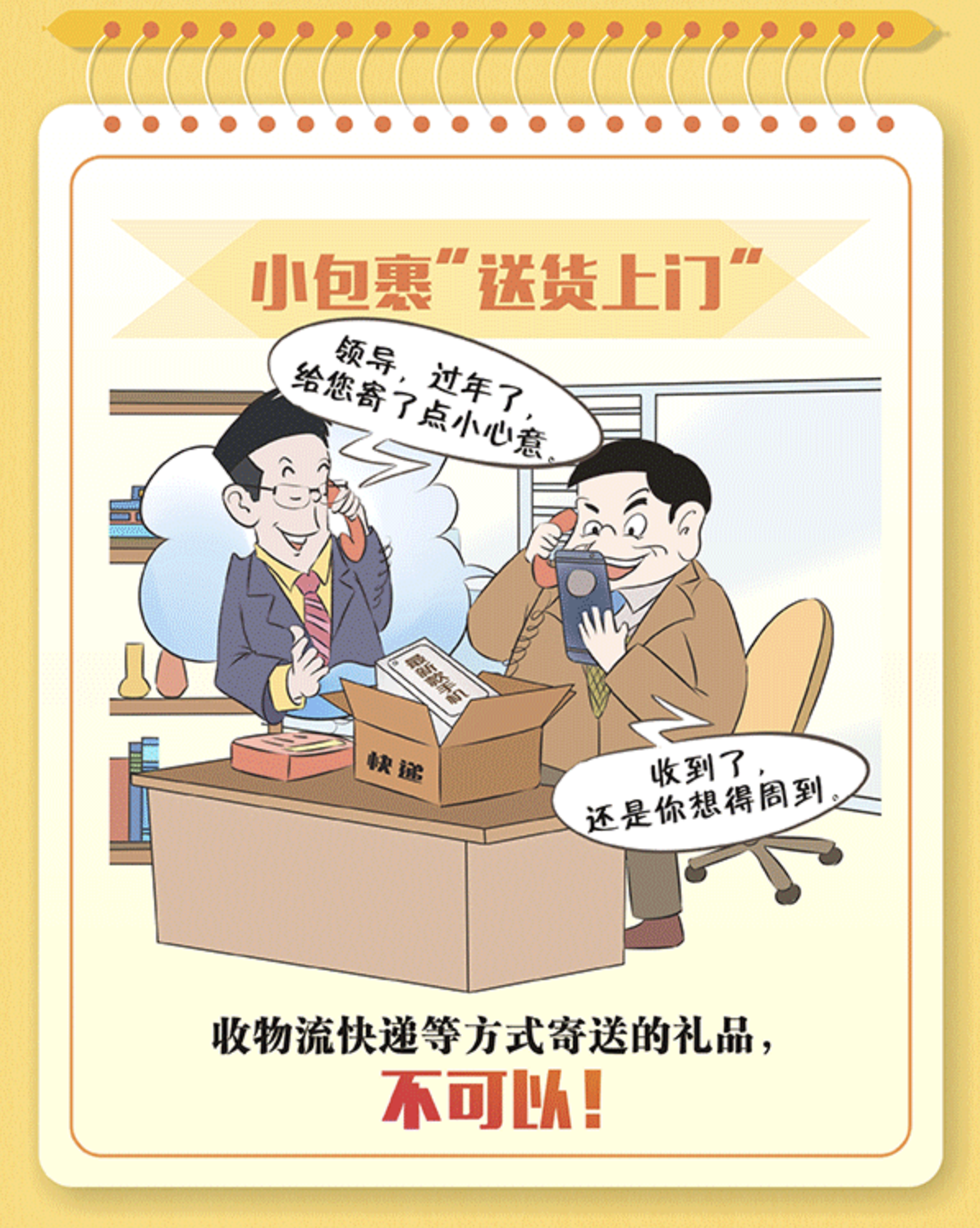 新春佳节将至,亲人、朋友间通过互赠礼物来表达美好祝愿。但是对于管理和服务对象送来的“礼”却要格外警惕。尤其是那些看似简单随意的馈赠,可能暗藏着隐形变异的“四风”问题。党员干部一定要心存戒惧、行有所止,对于改头换面、转入地下的送礼行为坚决说“不”,过好节、过廉节。
