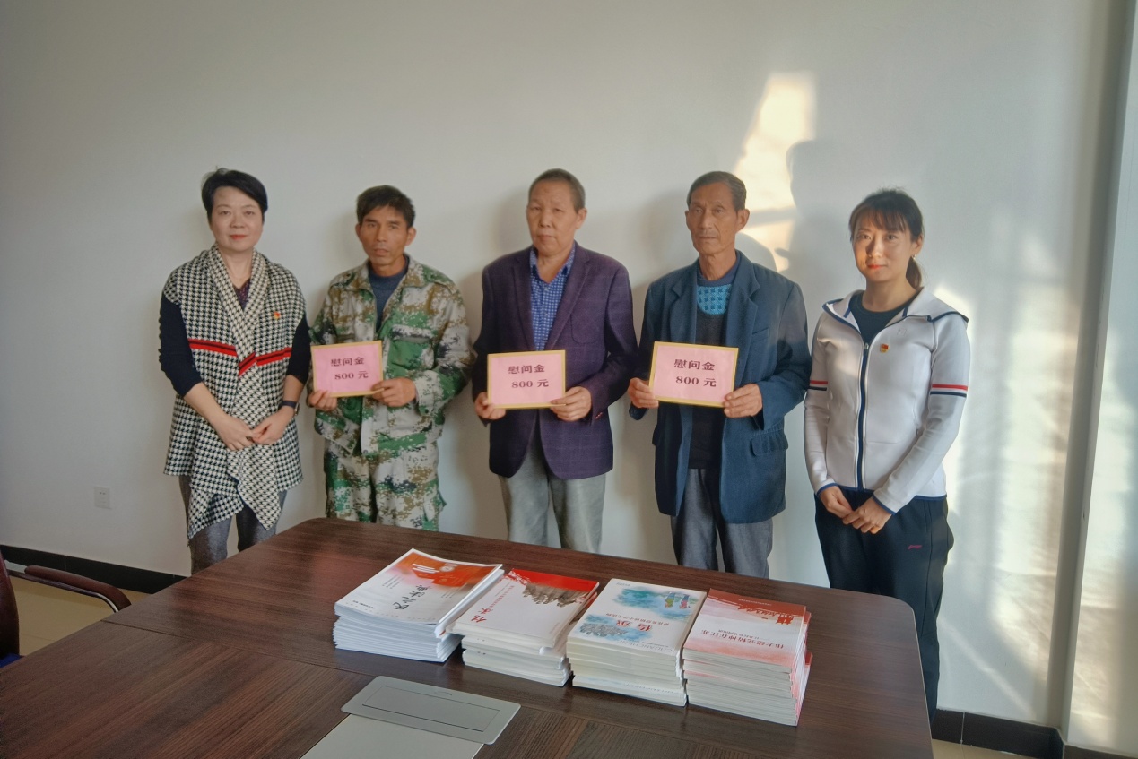 10月的骆山村,秋高气爽,阳光明媚。香甜的空气、金色的麦田诉说着丰收的喜悦。干净整洁的马路,错落有致又独具特色的村舍,都在向人们展示着骆山村在精准扶贫政策下的发生的可喜的变化。在骆山村党总支会议室,社科联的同志们与骆山村党总支书记王建辉、副书记杨春春以及帮扶对象进行了座谈,了解到在国家扶贫政策的大力支持下,骆山村全体村民已实现全部脱贫。此次,经过全面深入的摸排,3位村民有的子女去世,有年幼儿孙需要抚养,有的身患重病经济负担较重导致生活困难。社科联的同志详细询问了帮扶对象的近期生活和身体情况,并给他们发放了慰问金,让困难群众深切感受到党和政府的关怀和温暖,同时鼓励帮扶对象要坚定信心,积极配合村委工作,努力改变和提高家庭生活水平,早日致富奔小康。