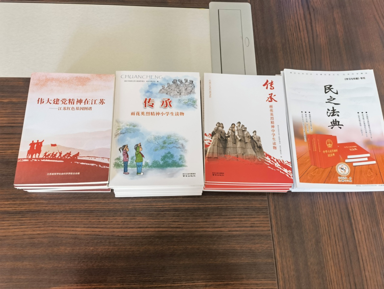 此外,为进一步推动“两在两同”建新功行动落实落地,进一步深化“我为群众办实事”实践成果,市社科联秘书长、第五党支部书记王福东也一同来到骆山村,向村委会赠送了《伟大建党精神在江苏》《传承——雨花英烈精神小学生读物》《传承——雨花英烈精神中学生读物》和《学习与传播专刊——民之法典》等一批书籍和读物,为满足村民的文化生活需要,提升村民人文素养贡献一份力量。