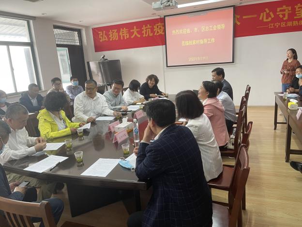 为巩固拓展党史学习教育成果,深化“我为群众办实事”实践活动,推进“同城共筑”,推动省市工会“共学共建”向“共学攻坚”深化提升,2022年5月11日,由省总工会副主席王树华和市总工会副主席郁忠共同带队,省总工会宣传教育与网络工作部党支部与市总工会宣传教育部党支部共同参与,赴江宁区湖熟街道钱家村开展共学攻坚行动“一社区一案例”微调研工作。