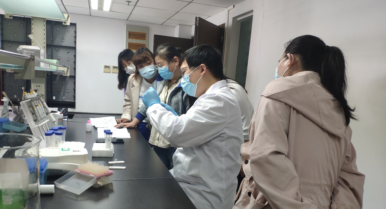开班前,青年党员们加班加点组织试用实验,逐参数、逐试纸条开展“快检+定量”比对检测与有效性验证,逐环节、逐步骤查找操作过程中存在的操作难点。同时,克服疫情影响,赴各区开展实地调研,征集基层在推广应用中遇到的疑难问题与培训需求。综合室内试验数据和实地调研情况,精心“定制”培训方案、认真打磨培训课件、仔细准备实操演示,确保培训效果。培训课上,青年党员张聪从“什么是胶体金”“为什么使用胶体金”“如何使用胶体金”“操作注意事项”等方面进行了系统阐释与视频讲解;实际操作中对样品制备、待测液稀释提取、结果判读等关键环节进行了操作演示,向学员们重点强调技术难点和操作要点,手把手帮助每一名学员完成全过程快检操作。学员们表示,本次培训内容丰富、操作性强,帮助解决了实际检测中容易产生的稀释不准、判读偏差等关键难题,对基层一线胶体金快检技术应用有很强的指导性。