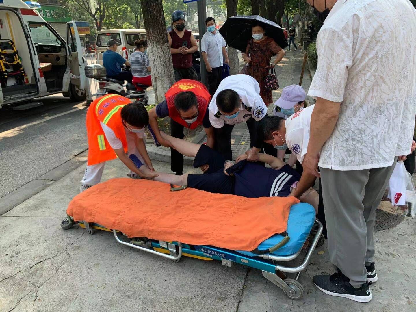 “喂,120你好,我们这里有人晕倒了,快安排救护车救人,地址在长虹路310号路口,我是志愿者,穿着红马甲,在马路边等你们。”在长虹路社区值守点,正在执勤的市建委志愿者谢海慧和倪辛瑞远远的看到不远处有个小伙子突然抽搐晕倒,谢海慧和倪辛瑞赶忙跑过去,一边查看晕倒的小伙子的情况,一边紧急拨通120急救电话求援,倪辛瑞帮忙照顾小伙子,谢海慧疏通车道等待救护车,两人用冷静合理的行动为救援争取最宝贵的时间。