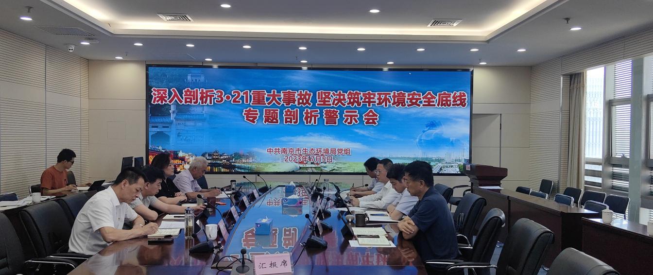 7月5日下午,市生态环境局党组召开“深入剖析3·21重大事故 坚决筑牢环境安全底线”专题剖析警示会,深入学习贯彻习近平总书记关于安全生产重要论述,深刻汲取“3·21”事故教训,坚决筑牢环境安全底线。局党组书记、局长李文青主持会议并讲话,全体局领导参加并逐一交流。省生态环境厅主题教育督导组相关同志到会指导。