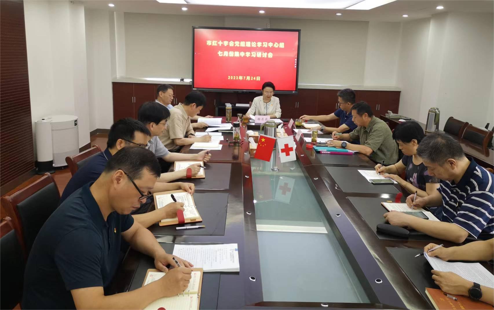 7月24日,市红十字会党组理论学习中心组召开扩大会议,深入学习习近平总书记考察江苏重要讲话精神,传达学习市委部署要求,交流学习体会,研究抓好贯彻落实的工作举措,会党组书记、常务副会长徐莉莉主持会议,机关处以上干部参加。