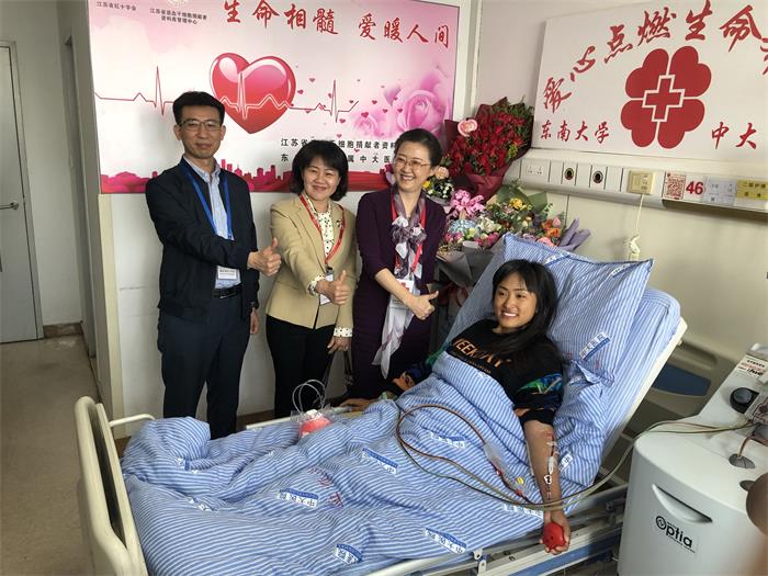 11月5日,南京市六合区竹镇镇志愿者于红在东南大学附属中大医院成功进行了造血干细胞采集,她光荣地成为全国第9104位、南京市第74位、六合区第6位捐献造血干细胞的爱心市民。