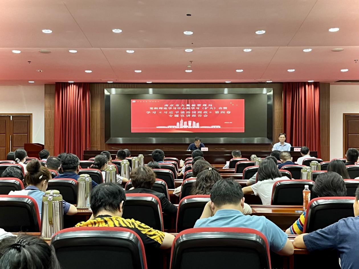 9月7日下午,南京市大数据管理局召开党组理论学习中心组学习(扩大)会暨学习《习近平谈治国理政》第四卷专题宣讲报告会,邀请了江苏省委党校公共管理教研部副书记徐敏宁教授作专题宣讲报告。会议由局党组书记、局长唐建荣主持,局机关及市信息中心全体人员参会学习。