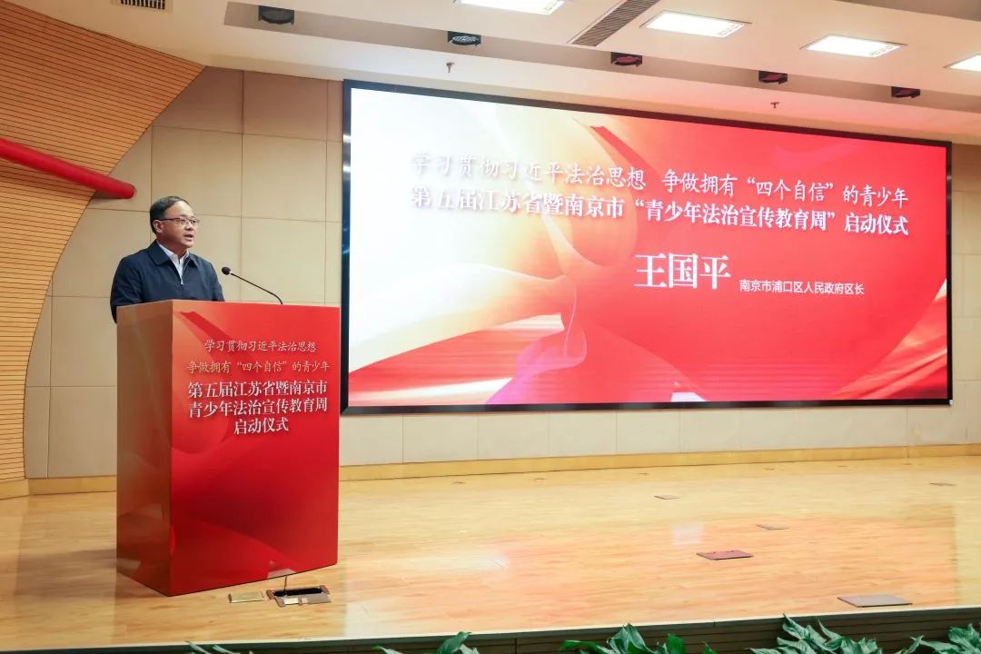 活动围绕“学习贯彻习近平法治思想 争做拥有‘四个自信’的青少年”主题。启动仪式上,浦口区委副书记、区长王国平对各位嘉宾的到来表示热烈欢迎,他表示,浦口区始终将青少年法治宣传教育摆在突出位置,并为青少年健康成长做了大量富有成效的工作。今后,要着力在青少年法治宣传教育针对性、实效性上迈出新步伐。强化引领、敢为善为,引导青少年从小掌握宪法法律知识、树立宪法法律意识、养成尊法守法习惯;创新方法、聚力而为,积极构建多方联动、广泛参与、共同行动的青少年法治宣传教育新格局;干在实处、倾情奉献,帮助青少年逐步掌握个人成长和参与社会生活必需的法律知识,厚植社会主义法治信仰。