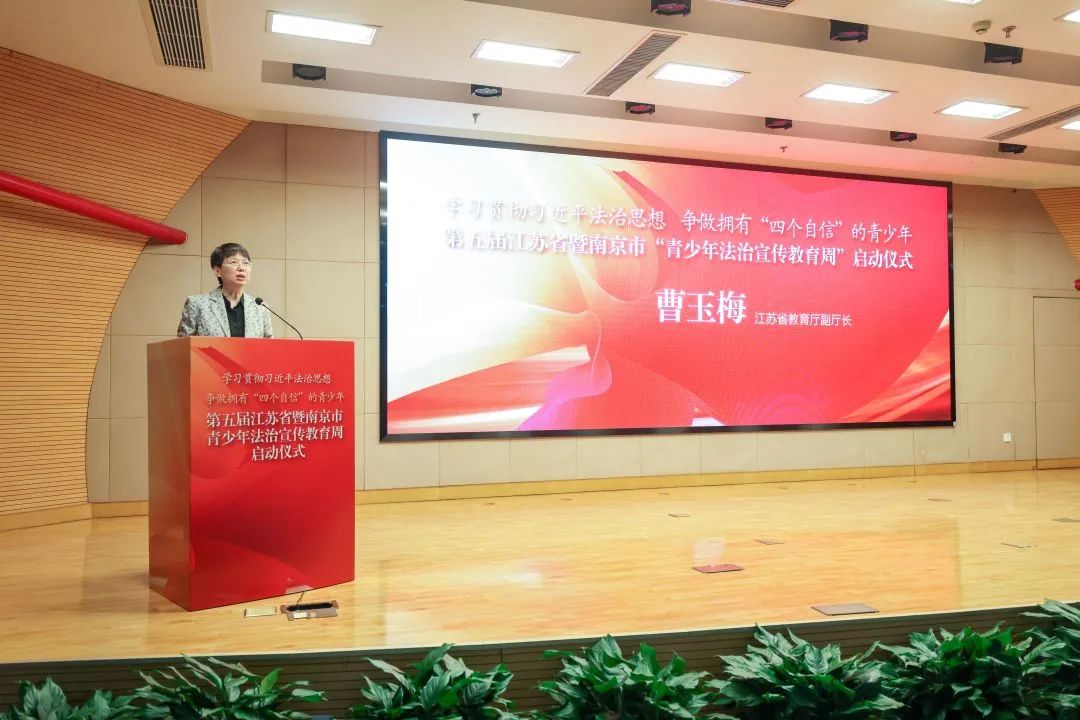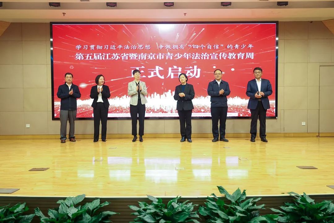 最后,省法院副院长刘嫒珍,省检察院副检察长席玉峰,省教育厅副厅长曹玉梅,省司法厅普法与依法治理处处长许建彤,市教育局一级调研员蒋希波,区委副书记、区长王国平共同宣布第五届江苏省暨南京市“青少年法治宣传教育周”正式启动。
