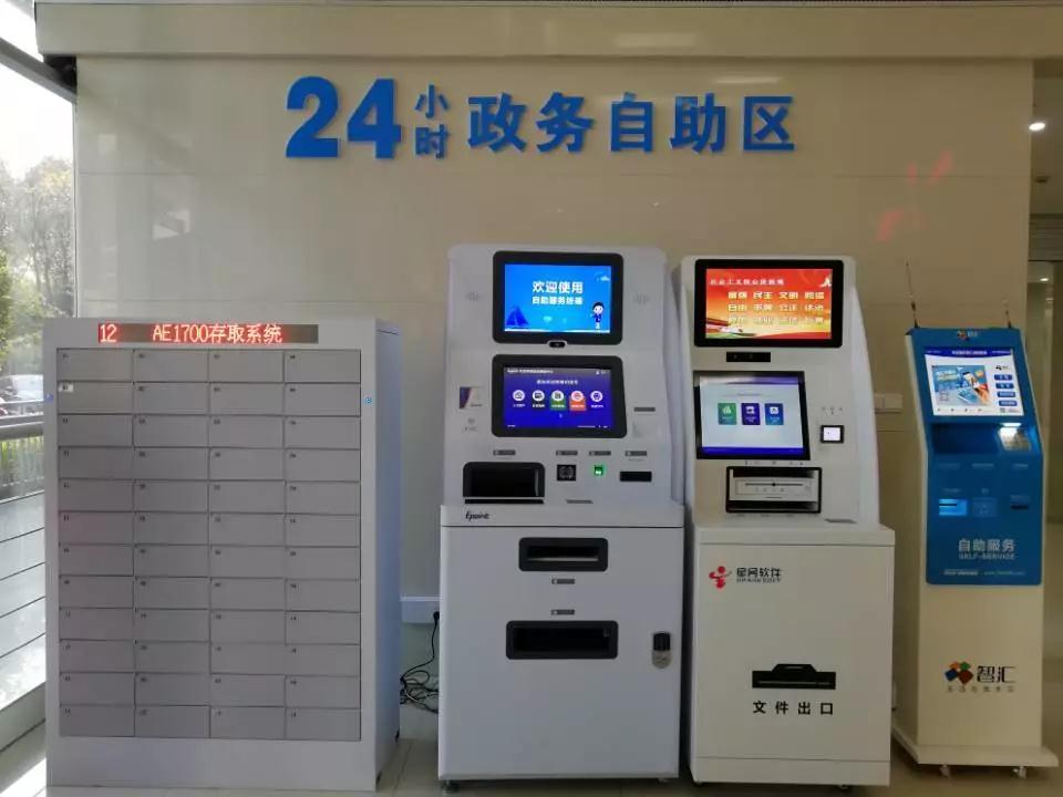 自助服务区24小时对外开放,可办理涉及人社、税务、不动产等多部门的业务,涉及企业投资、社会事业、民生综合等领域的200余项审批业务,以及近40项公共便民业务,另外配置有一台智能文件柜,企业群众办件过程中可以收取、存放材料。