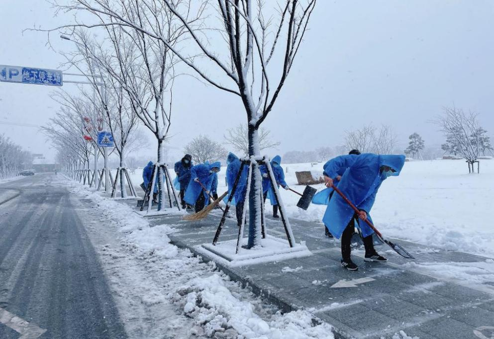 天气虽冷,大家手拿铁锹、扫帚、除雪铲等工具,配合默契,干劲十足。经过共同努力,原本布满积雪的路面已被基本清扫干净。大家为办事群众开辟安全“政务通道”,保证车辆及办事人员交通安全,受到了过往群众的称赞。