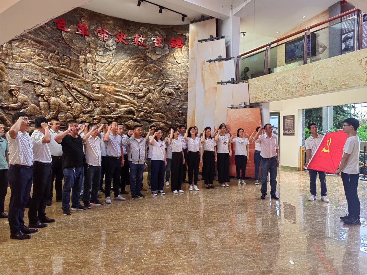“我志愿加入中国共产党,拥护党的纲领,遵守党的章程,履行党员义务......”7月1日,高淳区房产局党总支全体党员来到高淳区红色革命史教育馆开展“七一”主题党日活动,面向鲜艳的党旗,重温入党誓词,共同学习党在高淳的革命历史。