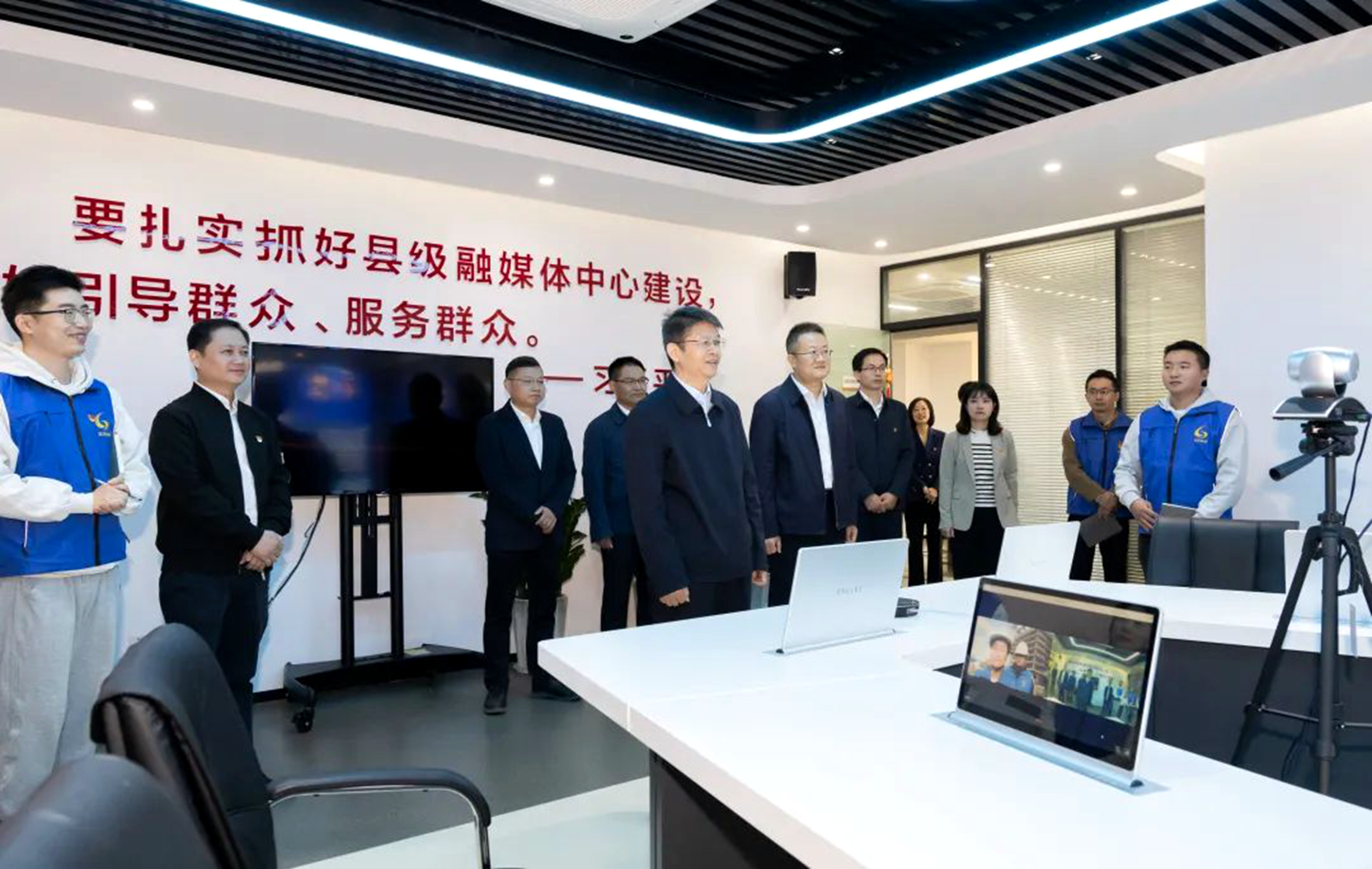 刘伟一行实地察看了区融媒体中心荣誉展示和党建书吧区、融媒体指挥中心、演播大厅,了解媒体融合生产情况,并与一线记者进行视频连线,观看区融媒体中心摄制的精品短视频、微纪录片。