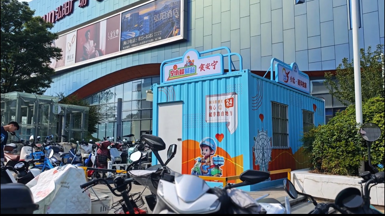 在南京市外卖配送行业党委的支持下,原来一处闲置的核酸小屋移到泰山街道弘阳广场大洋门口,成了“宁小蜂·食安宁·小北骑手微家”驿站,可以为外卖小哥提供休憩场所,配备空调、饮水机、微波炉等设施,让大家在炎炎夏日或恶劣天气下有个舒适的休息环境。“微家”还提供免费手机充电、应急药品、图书阅览等服务,将成为骑手们重要的能量补给站。