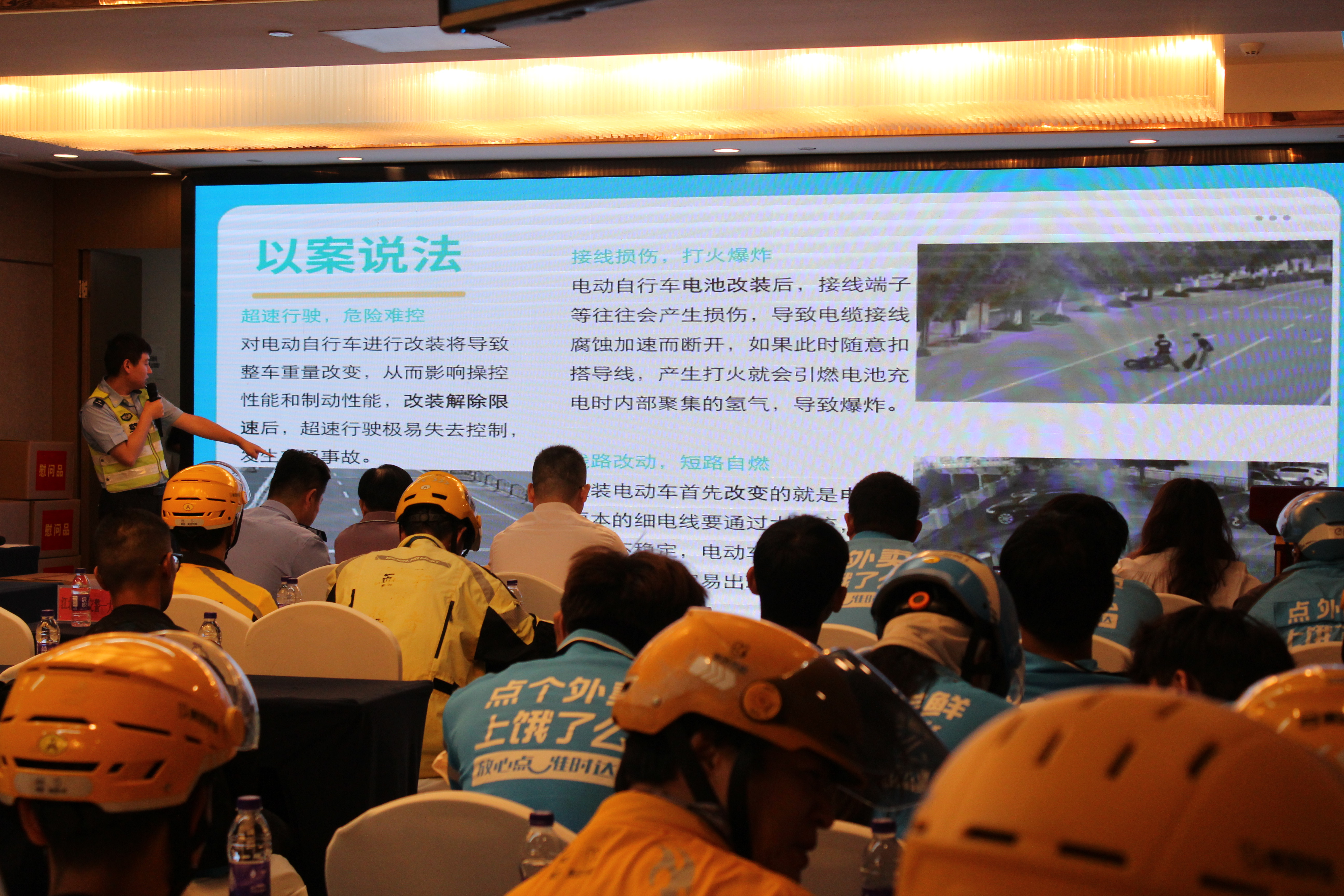 活动最后,江北新区交警一大队为骑手们带来了一场生动的道路安全培训,结合近期身边的典型交通事故案例,详细讲解了外卖配送过程中常见的交通违法行为及潜在风险,重点强调了遵守交通规则、佩戴安全头盔、不闯红灯、不逆行等安全注意事项。在场的骑手们纷纷表示会将安全知识牢记于心,时刻绷紧安全这根弦。