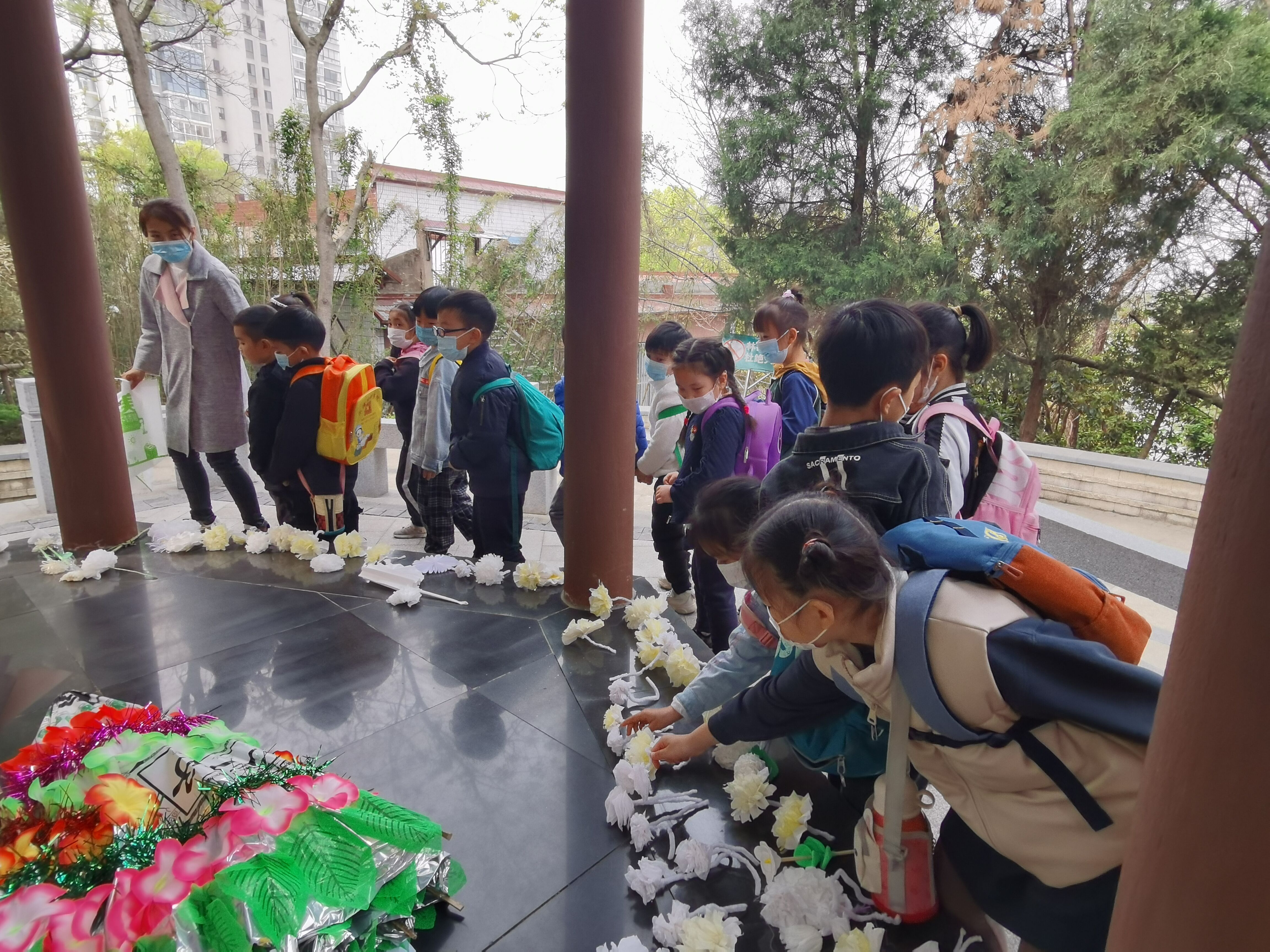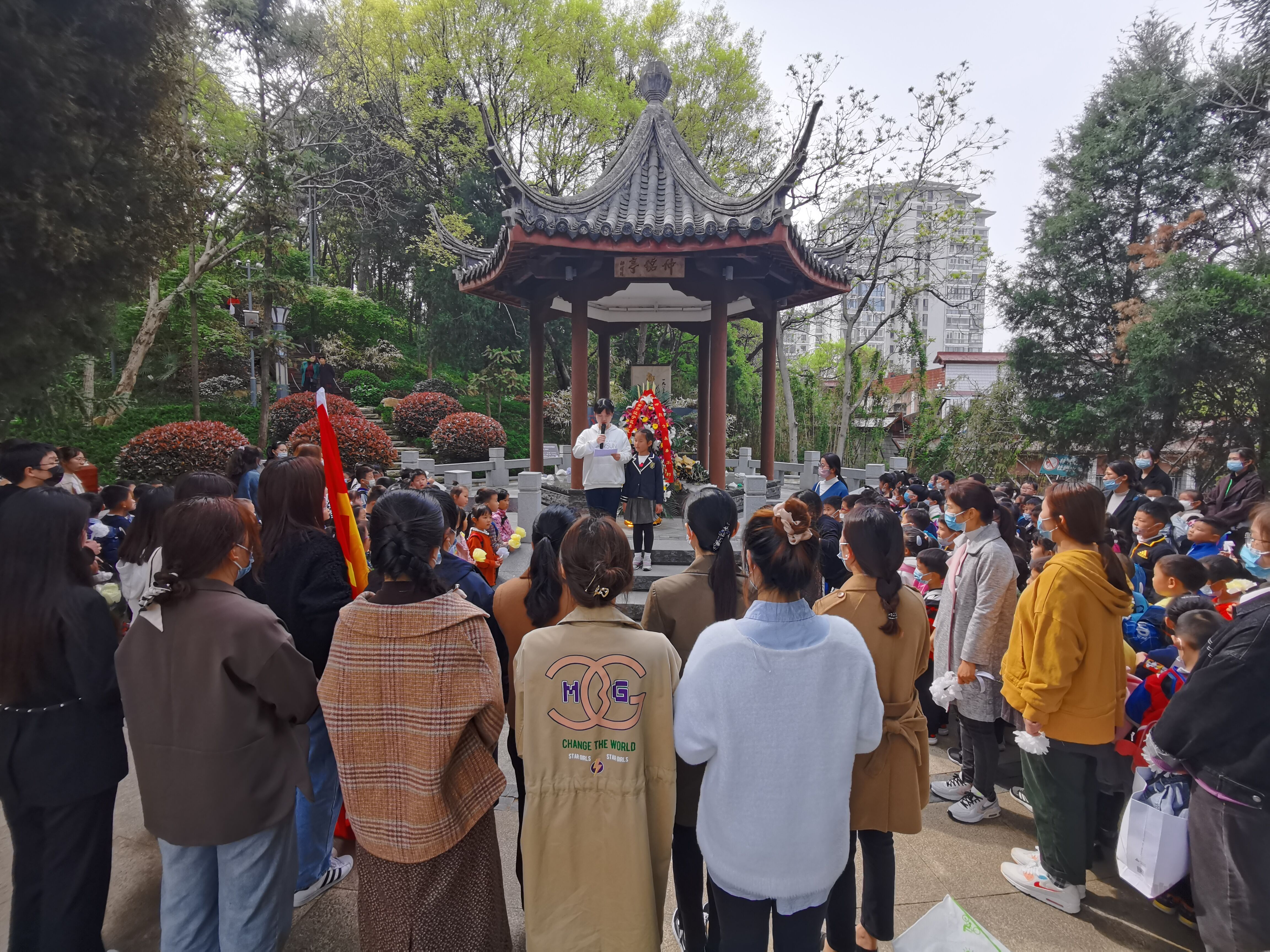 寓教于行。3月30日上午,由幼儿园支部书记带队,全体党员和大班年级组教师组织近170名大班幼儿,徒步前往校园外800米远的竹山邓仲铭烈士陵园,穿过仲铭桥,师生拾阶而上,来到青松环绕、肃静庄严的邓仲铭烈士墓碑前。介绍完邓仲铭先烈的英勇事迹后,全体师生向革命烈士鞠躬默哀,并敬献了花圈和孩子们亲手制作的小白花,表达对革命前辈的敬意。数位幼儿现场自发报名,在台阶上发表感想感言,表示一定不忘革命先烈,珍惜今天的美好生活,好好学习,将先烈的精神发扬光大。