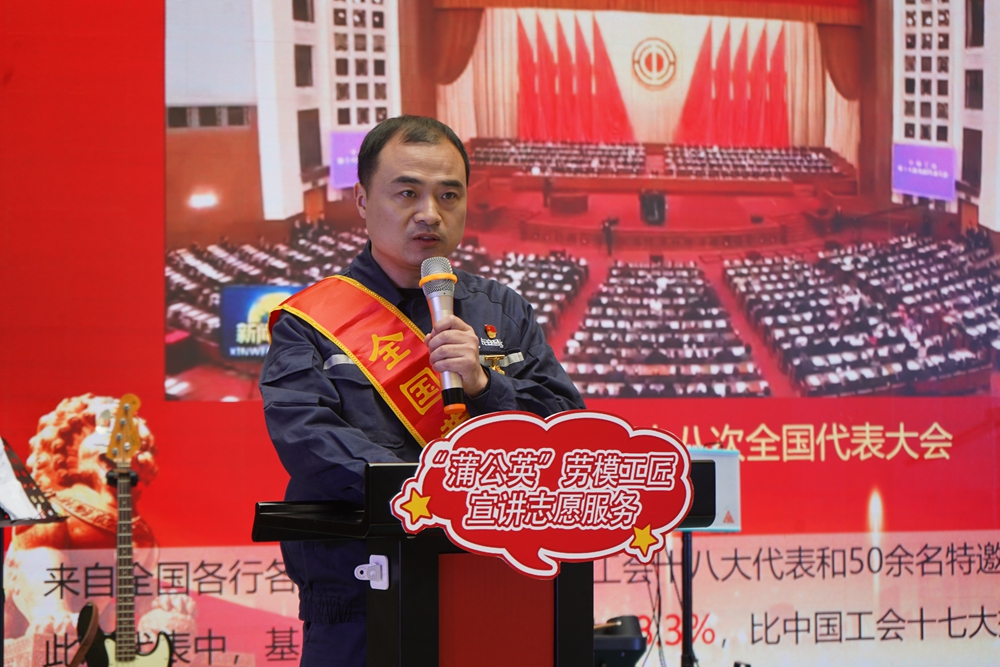“中国工会十八大报告让我十分振奋。立足当下,作为一名制造一线的产业工人,今后的工作中,我将依托自身的技术优势和劳模工作室,把培养青年职工成长作为应尽责任,做好‘传带帮’,持续提升团队成员的业务能力和综合素质。”3月15日,参加过中国工会第十八次全国代表大会的中国工会十八大代表、全国劳动模范、江宁“蒲公英”劳模工匠志愿服务宣讲团成员余伟伟来到了“思政领航‘声’入职工 助力南京向‘新’突破”——2024年江宁“蒲公英”劳模工匠示范性宣讲志愿服务活动现场,就中国工会十八大精神进行宣讲。