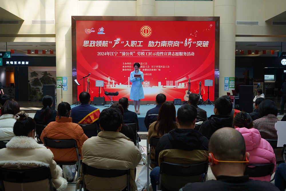 春风又绿江南岸,宣讲活动正当时。2024年,江宁区总工会“蒲公英”劳模工匠志愿服务宣讲团将继续围绕“思政领航‘声’入职工 助力南京向‘新’突破”主题,通过组建劳模工匠、思政教师志愿服务团,职工文艺轻骑兵、“小惠”工作室四支队伍,打造“工会十八大宣讲团”,通过开展多层次、分专题、系统化的宣传宣讲活动,进一步丰富宣讲团的架构和载体,提升宣讲活动的广度和深度,打造“双进”特色品牌,团结引领江宁区广大职工群众切实将中国工会十八大精神转化为攻坚克难、砥砺奋进的动力,努力工作,勇于担当,展现新时代工人阶级形象,共同用劳动书写绚丽多彩的时代华章。