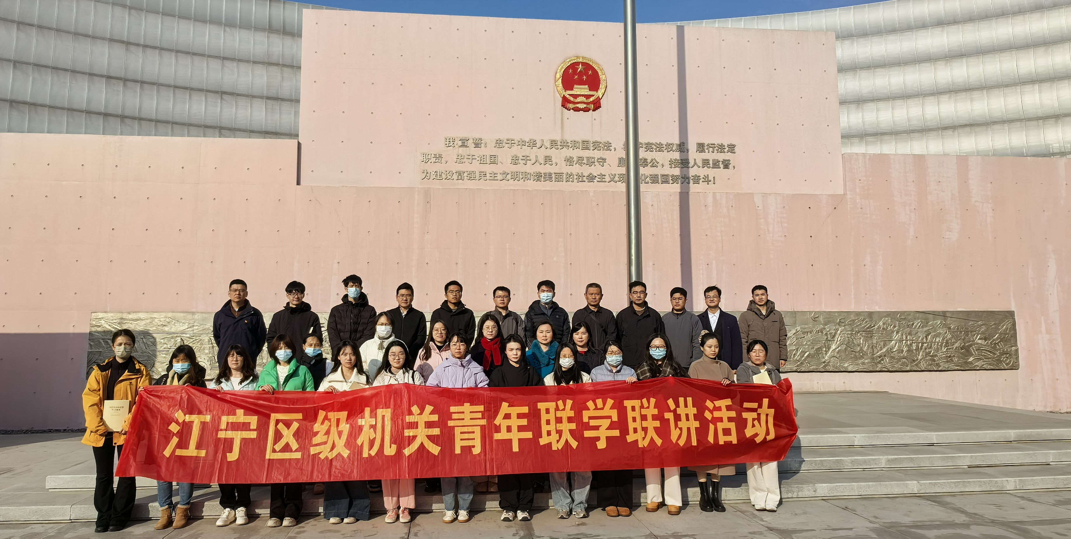 为深入学习贯彻党的二十届四中全会精神,推动习近平法治思想入脑入心入行,引导机关青年厚植法治信仰、明晰职责使命,12月12日下午,由江宁区委区级机关工委主办的“青春铸法治 奋进新征程”青年联学联讲活动,在南京市宪法公园顺利开展。区级机关各青年理论学习小组负责人及青年干部代表共40余人参加此次活动。