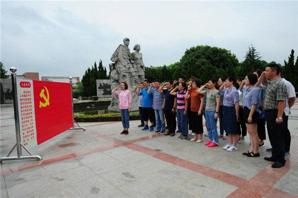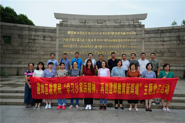 7月6日,建邺区教育局机关党支部组织全体党员开展“学习沙家浜精神,再创建邺教育新辉煌”主题党日教育活动。全体党员在先烈塑像和党旗前重温入党誓词并集体过政治生日,党员代表赵万平发言。