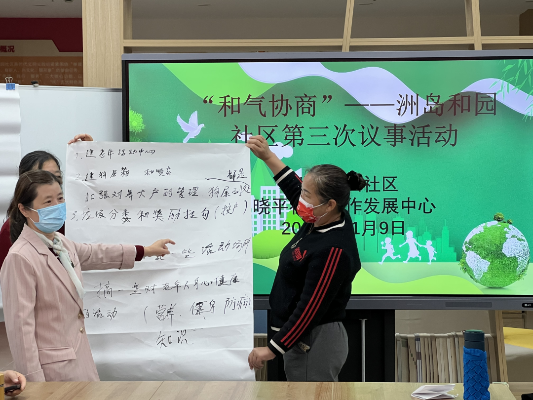 和乐——创新社区自治。以新时代文明实践站五大功能平台为载体,组建党员义工、超级妈妈、先锋少年、文明劝导、和谐平安5支志愿服务队伍,开展形式多样公益服务活动100余场;举办“和苗”儿童议事会、“和气协商”议事会12场,让居民“说事情、诉需求、提建议”,有效推动洲岛和园小区议事亭建设等民生项目20个。
