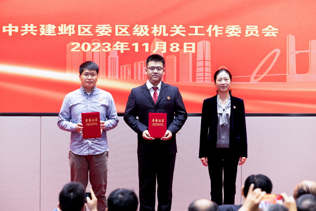 11月8日,建邺区委区级机关工委举行区机关 “学思想﹒我来讲”微党课分享暨“优秀主讲人”评选活动。市委市级机关工委副书记刘姗姗,建邺区委副书记陈光辉出席活动。