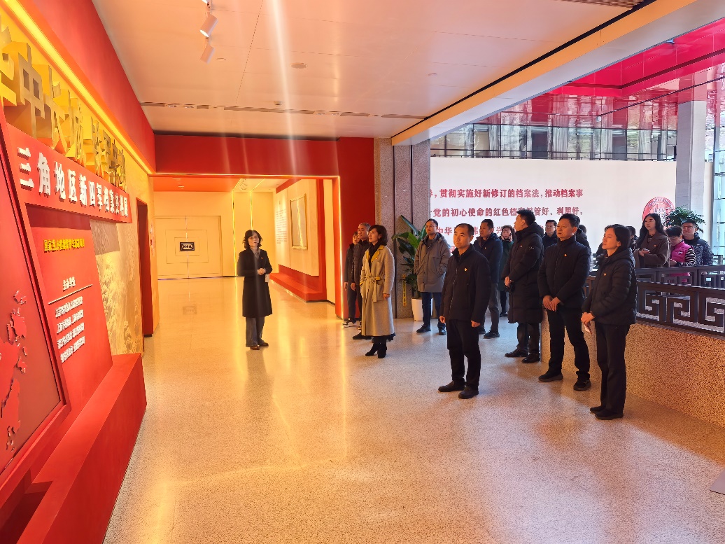 全体党员首先参观了“书信家国 尺牍情深——弘扬伟大建党精神长三角档案联展”“华中长城 铁军忠魂——长三角地区新四军档案史料展”。