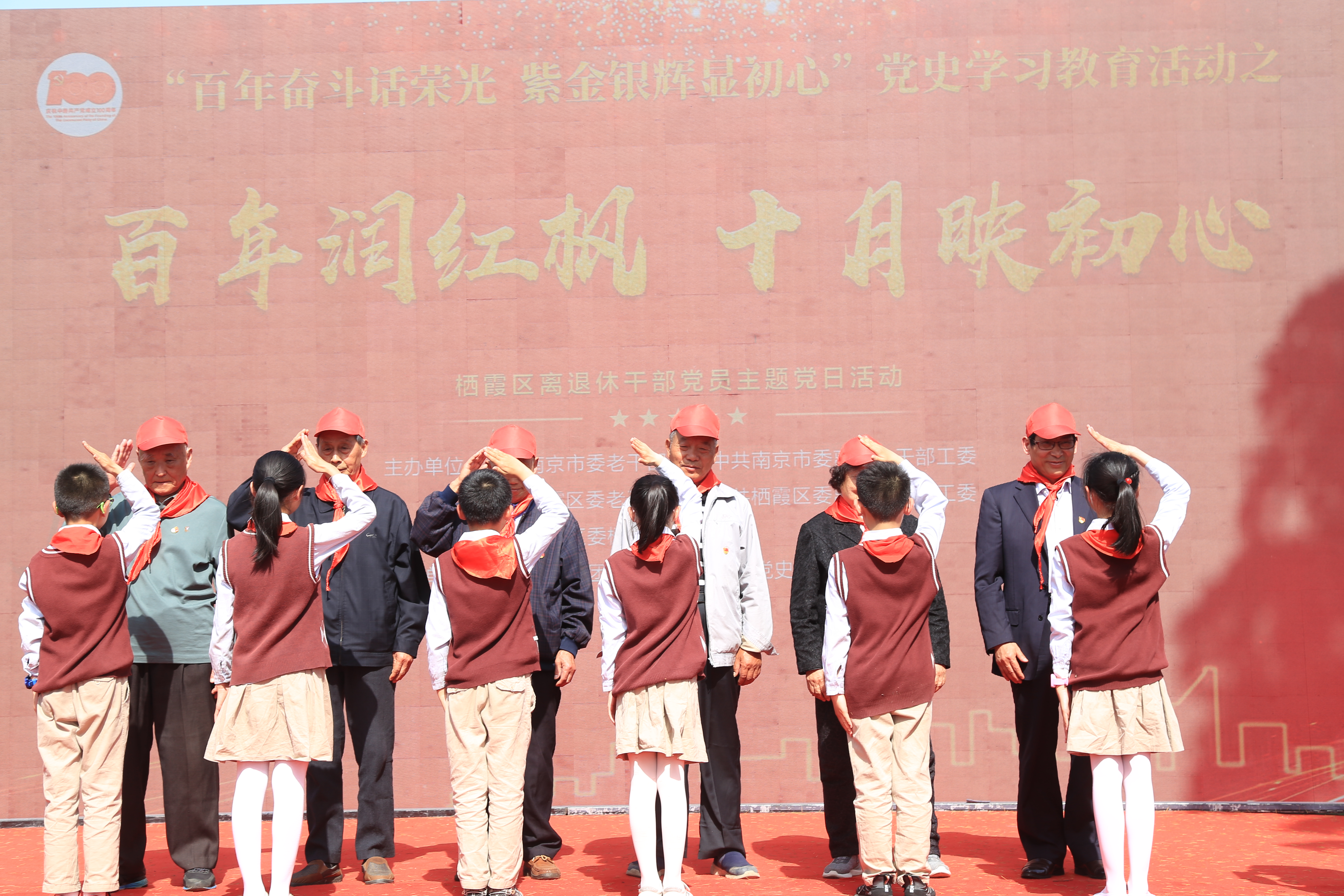 整场活动内容丰富、主题鲜明、引人入胜。围绕“百年奋斗话荣光、紫金银辉显初心”主基调,以“百年润红枫、十月映初心”为主题,共分为瞻仰伟人形象、重温红色记忆、致敬辉煌历程、传承精神血脉四个篇章。通过向主席像敬献花篮、见证者口述历史、佩带红领巾、赠书送学、节目表演、向党旗宣誓及集体唱红歌等形式,重温中国共产党与人民心连心、同呼吸、共命运的百年历史,赞颂栖霞在党的领导下发展的光辉历程,致敬老党员、老同志们为栖霞建设作出的不可磨灭的贡献,以及新时代党员干部在传承中坚定红色信仰、牢记为民初心、勇担时代使命的责任与担当。
