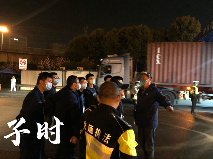 丑时:四桥卡口的第一道关卡,便是栖霞山大桥收费站口查验点。深夜已至,货运司机们为了城市的正常运转仍在奔波,同志们也努力克服夜班疲惫,保持敏锐与专注,确保不漏一车,不漏一人。