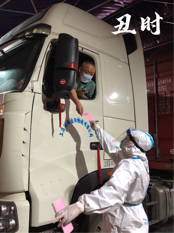 戌时:高风险区抵宁的驾乘人员,则由引导组第一时间与网格员、企业联系人进行对接,形成三点闭环,再由引导车“点对点”一路领航,保障货运司机不走弯路。