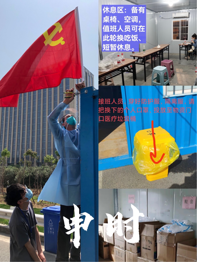申时:与晚班工作人员一同到来的还有防疫及生活物资,协调组成员将物资分门别类、标识清晰,集思广益完善生活及医疗等设施,为“前线”工作人员提供全方位的后勤保障。