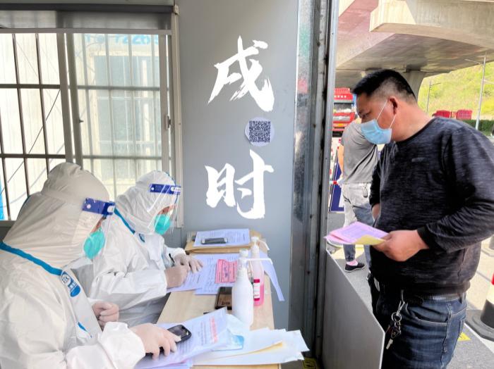 疫情防控不放松,货运通畅要保障。司机驶离收费站口时,每辆车都会领取一张印有二维码的查验单,便于驾乘人员在等待过程中扫码登记,截图备用,大幅减少下车后的停留时间。