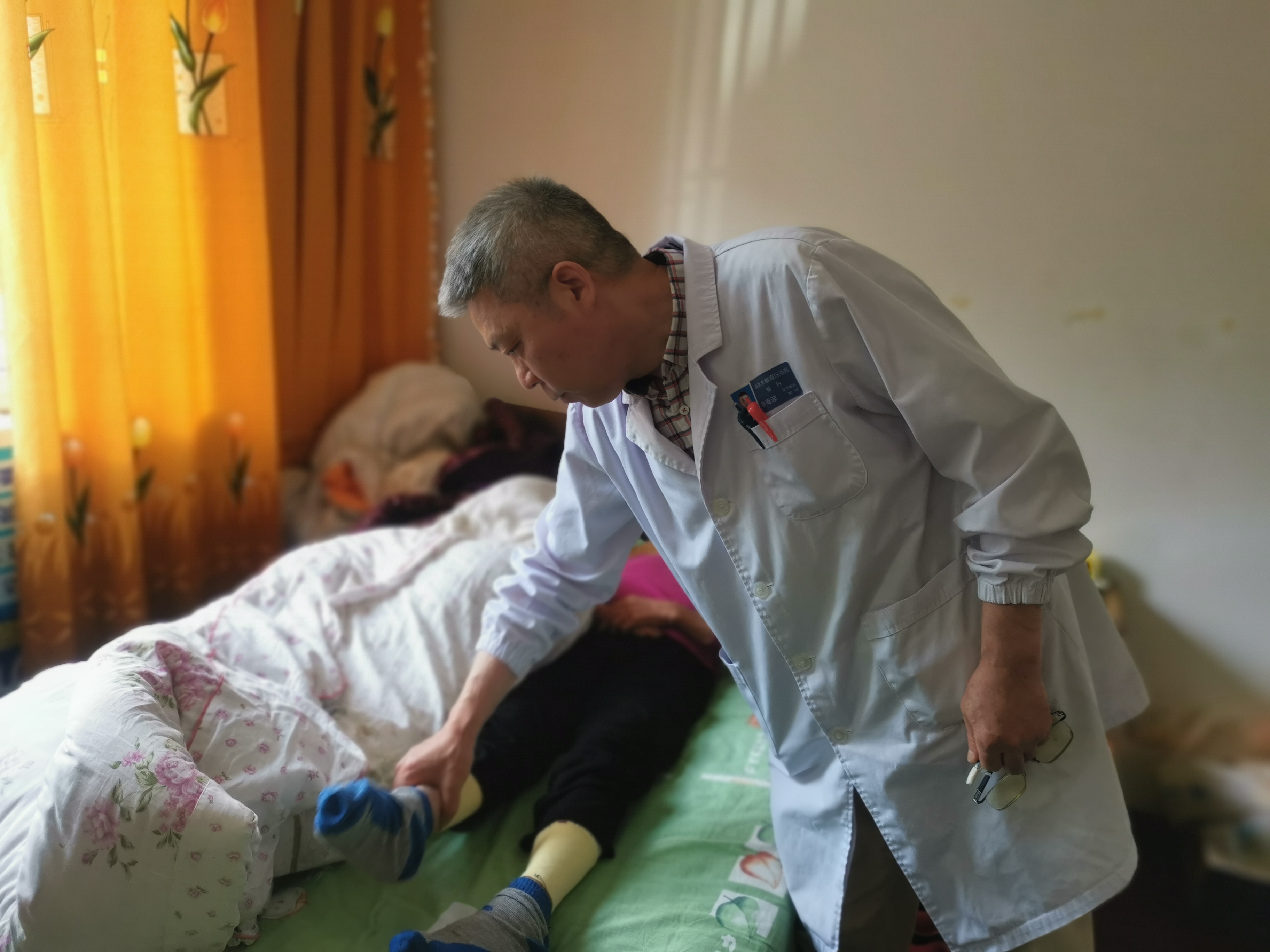 每到一户,栖霞区医院骨科主任徐海波都详细检查申请人身体状况,查看病历资料,并仔细询问病史及致残原因,细致严谨对照残疾评定标准进行评残鉴定,并给予康复建议和指导。