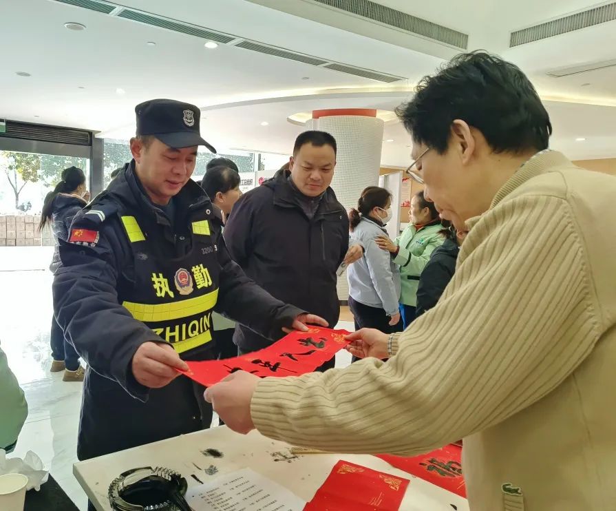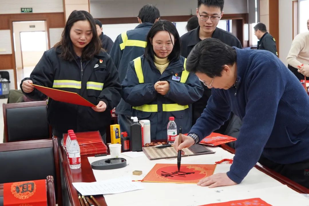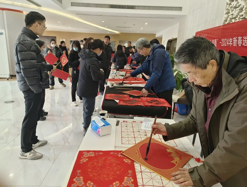 “老师,我想要个招财进宝合体字。”“这个对联写的好,手写的就是要比打印的有味道!”“我想自己写,能借您笔用一下吗?”春节临近,“工会常伴˙贴心送暖”——2024年新春送福进企业公益志愿活动拉开序幕,栖霞区总工会携手区文联邀请区书法家协会老师分别走进南京明州码头有限公司、江苏凯米膜科技股份有限公司、高新园区紫东创意园,400余名企业职工参加活动,为职工书写春联和福字,赠送新春祝福与喜气。
