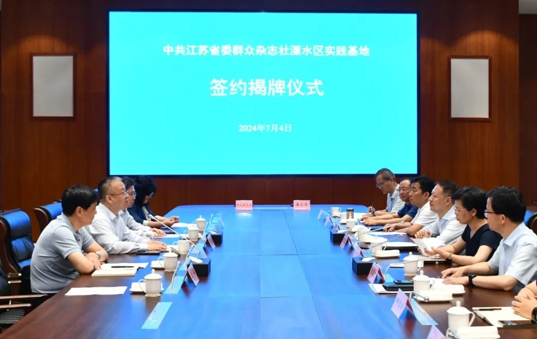 7月4日,中共江苏省委群众杂志社溧水区实践基地签约揭牌仪式在溧举行。群众杂志社总编辑周斌、溧水区委书记张蕴出席并共同为实践基地揭牌。群众杂志社副总编辑李程骅,溧水区长缪秀梅,区领导夏云、张德才等参加。