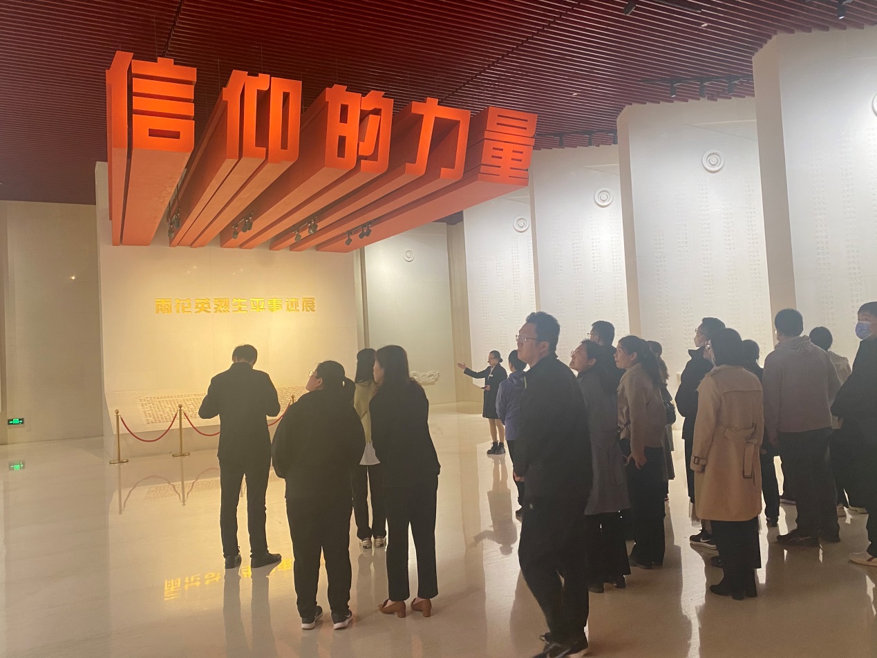 考察团首先赴雨花台烈士陵园纪念馆参观,凭吊先烈,沉浸式学习,提升党性修养。在讲解员生动细腻地讲解中,邓中夏、恽代英、郭纲琳、丁香等一位位可歌可泣的雨花英烈的动人事迹跃然眼前,考察团深深感受到了雨花英烈们舍小家为大家,舍生命为理想,舍安逸为事业,舍个人为人民的牺牲精神、奉献精神、斗争精神,再一次重温了中国共产党人的初心和使命,许多考察团成员眼含泪光、大为动容,对机关“英雄支部”创建的历史背景、内涵意义有了更深的理解。