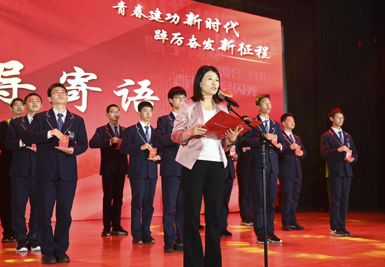 团徽闪闪,是荣誉、是责任,区政府副区长吕晨寄语新团员,希望大家可以不负重托,充分发挥示范引领作用,做建设祖国的生力军、堪当重任的栋梁之材。