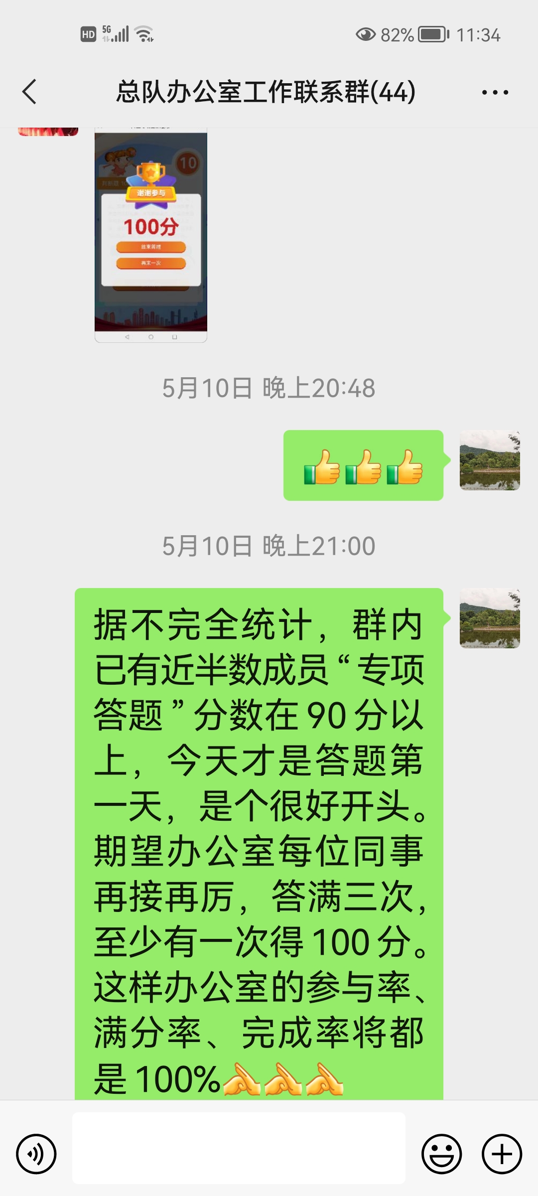 组织考试。全面发动党员干部、公职人员关注“钟山清风”微信公众号,要求所有党员干部、公职人员一人不落认真参与“网上答题”活动。同时,营造浓厚的“比学赶超”氛围,鼓励大家在微信群、QQ群晒答题成绩,及时对满分人员及时给予肯定,并颁发电子“荣誉证书”,鼓励党员领导干部在学习和贯彻《条例》上发挥带头作用。目前,大部分单位参与完成率100%,部分单位完成三次答题90分以上的人员达100%。
