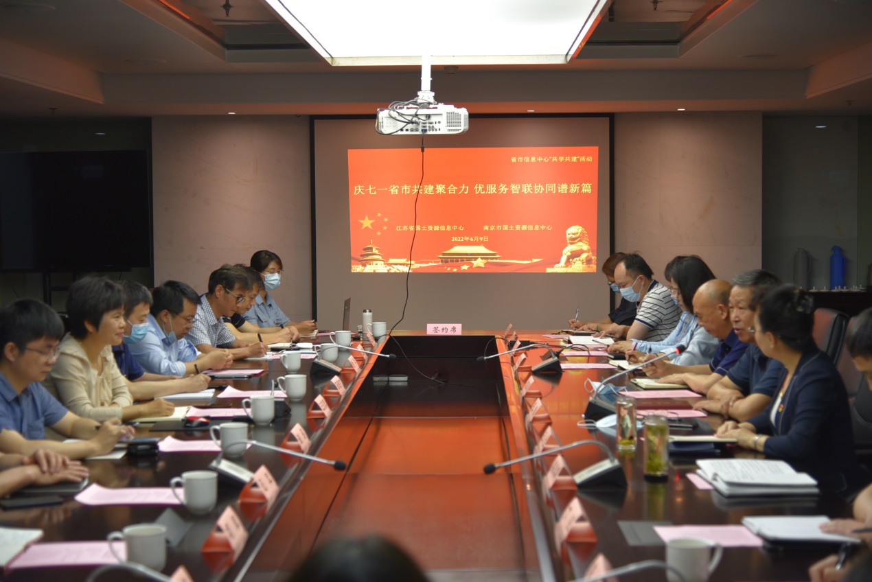 为进一步落实省市“共学共建”活动要求,南京市国土资源信息中心党支部与江苏省国土资源信息中心党支部启动省市“共学共建”活动。
