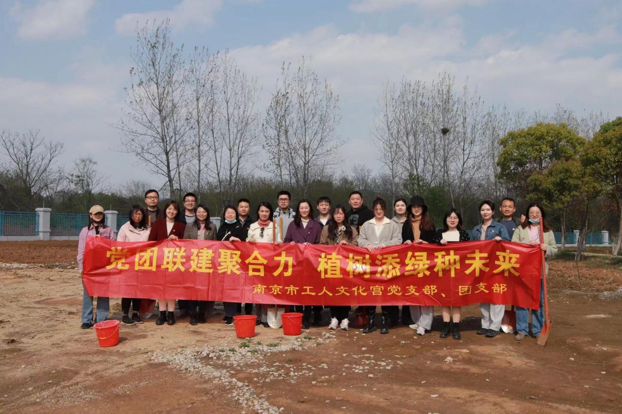 为了积极探索党建带团建,团建促党建,党团共发展的新路径,充分发挥基层党组织战斗堡垒和党员先锋模范作用,引导全体青年干部积极践行“绿色发展”理念,传承热爱劳动的传统美德和优秀文化。4月7日下午,南京市工人文化宫党支部携手团支部,组织全体党员、入党积极分子、入党申请人、全体团员前往南京职工疗养院开展“党团联建聚合力植树添绿种未来”主题党日活动。